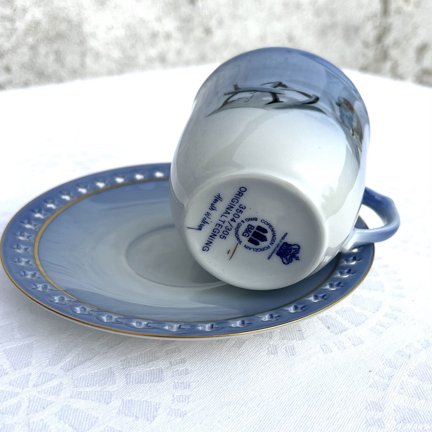 Bing & Grøndahl, Weihnachtsset, Kaffeetasse, Heinzelmännchen und Schlitten #3504 / 305, 7cm hoch, 7cm Durchmesser, 2. Sortierung, Design Harald Wiberg *Guter Zustand*