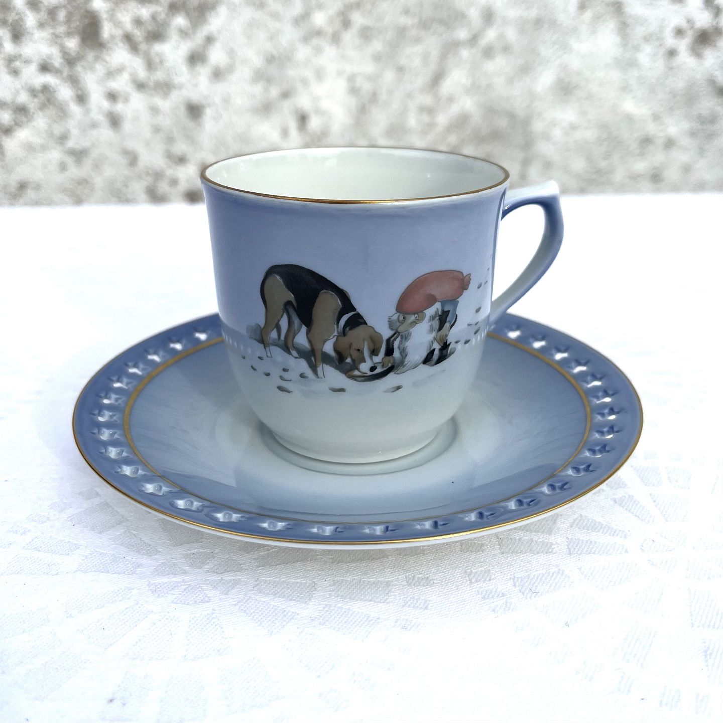 Bing & Grøndahl, Weihnachtsset, Kaffeetasse, Heinzelmännchen & Hund #3502 / 305, 7cm hoch, 7cm Durchmesser, 2. Sortierung Design Harald Wiberg *Guter Zustand*