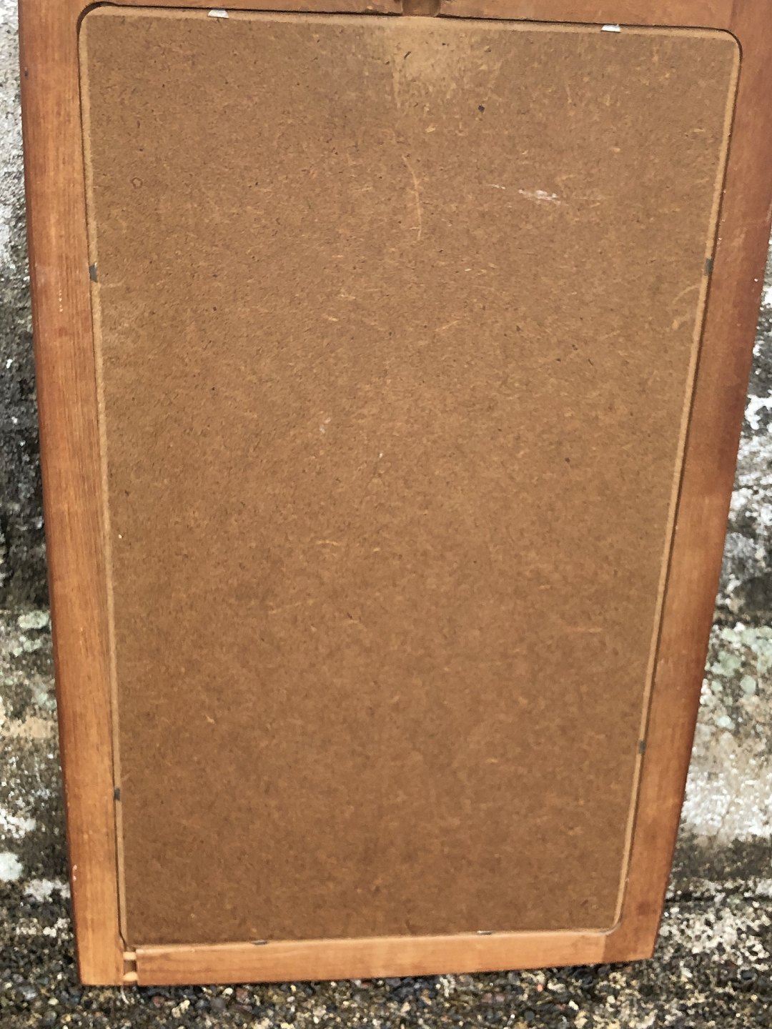 Spiegel in Teakholzrahmen. Dänische Moderne aus den 1960er Jahren. Beschädigung an der unteren Ecke (siehe Foto), sonst schöner gebrauchter Zustand. Abmessungen 67 x 41 cm