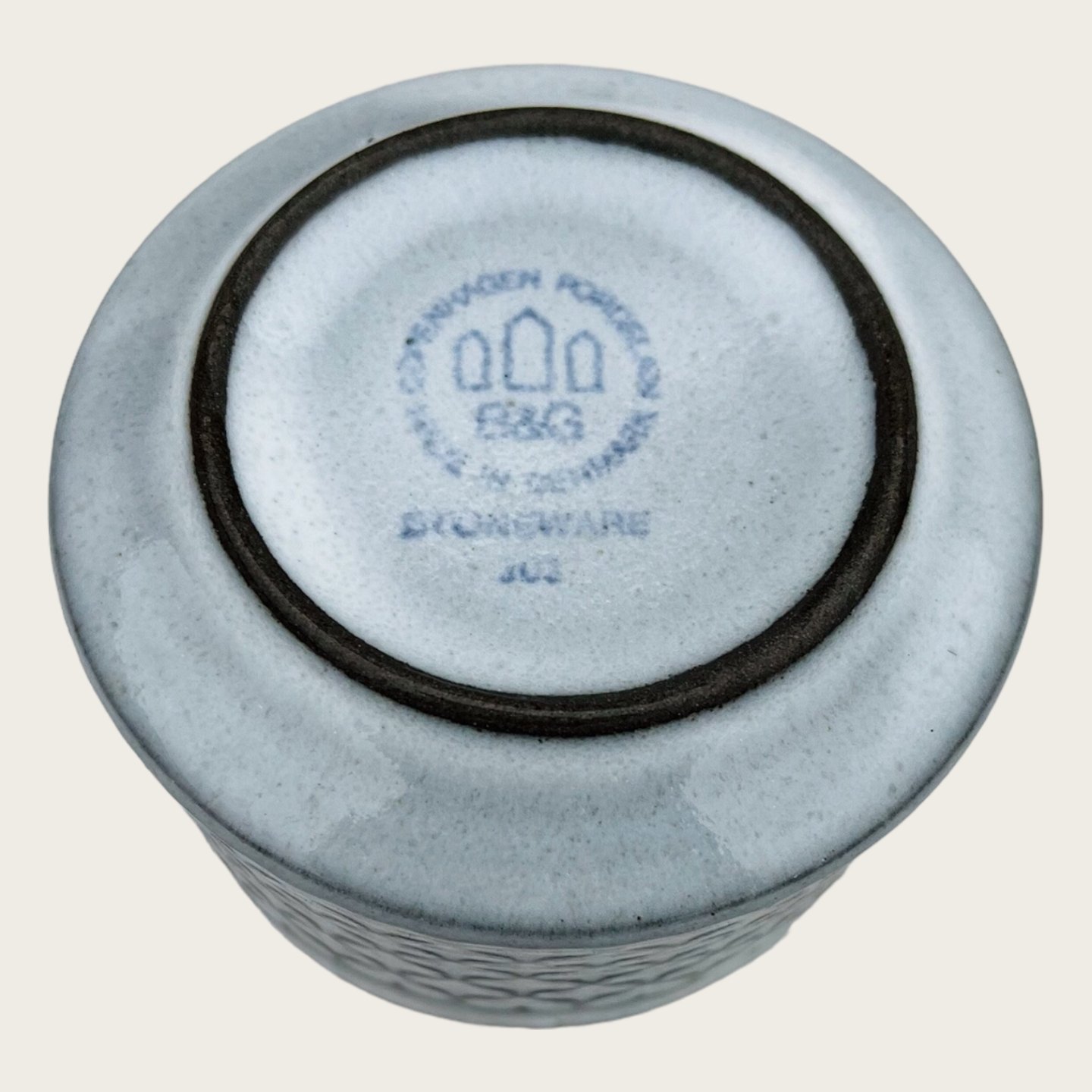 Bing & Grøndahl / Nissen, Grey Cordial Steinzeug, Zuckerdose #303, 8 cm Durchmesser, 6 cm hoch, Design Jens Harald Quistgaard *Guter Zustand*