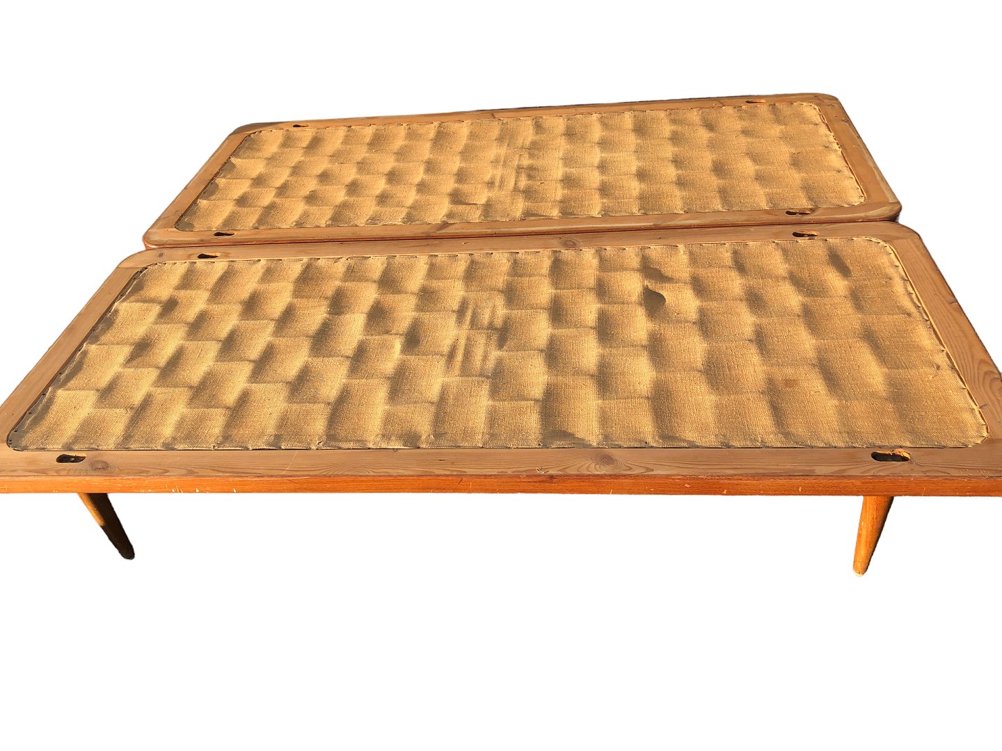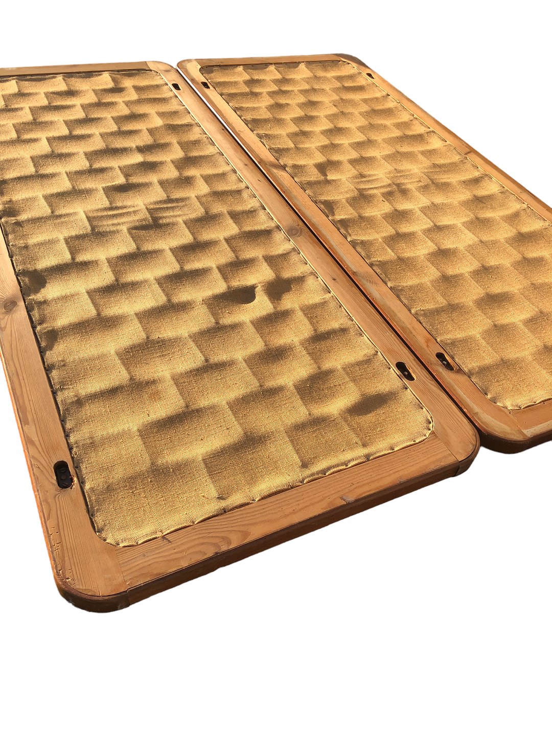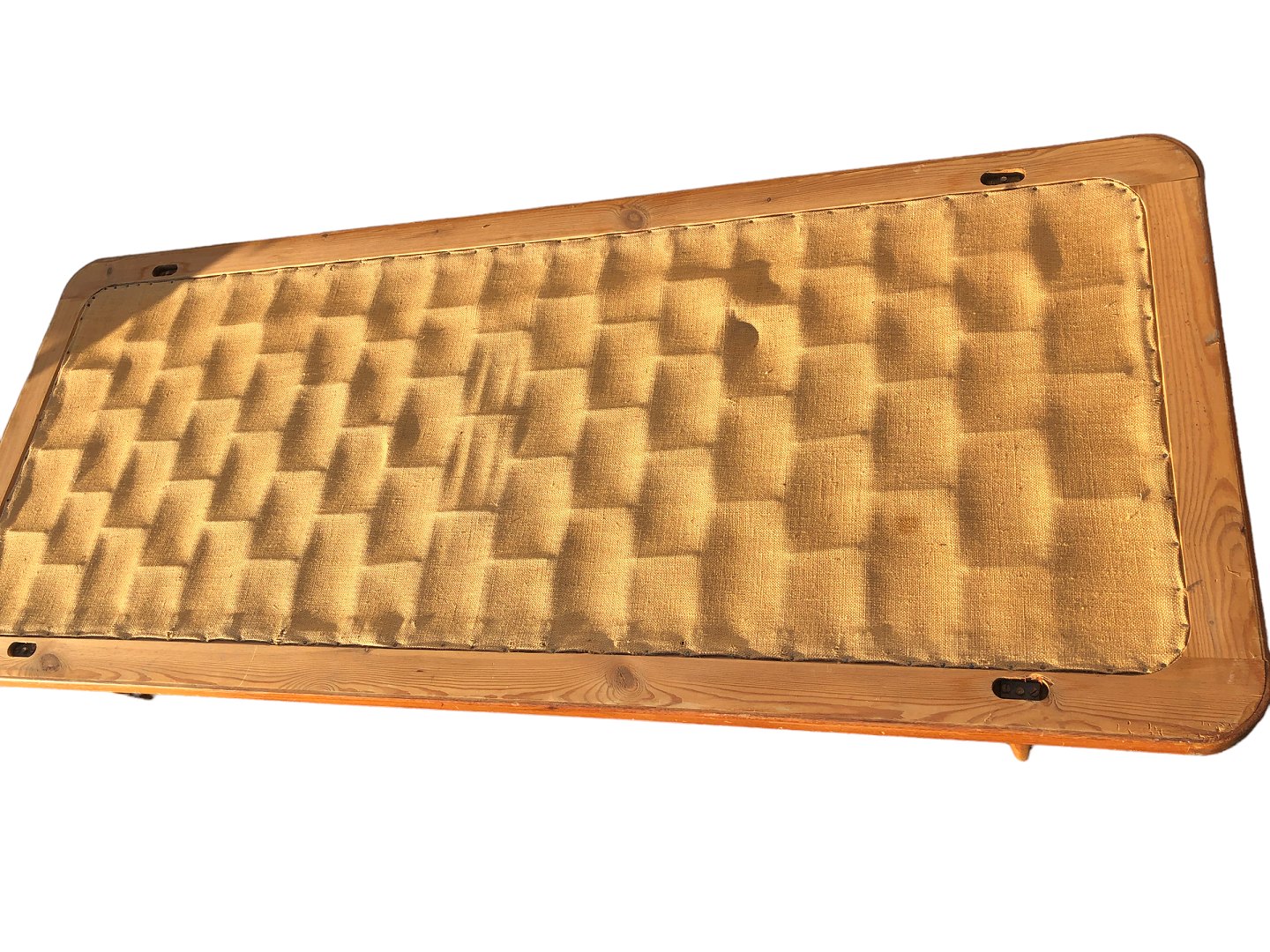 Daybed in Teakholzfurnier mit Beinen aus massivem Teakholz. Hat einige altersbedingte Gebrauchsspuren. Abmessungen: 30 x 190 x 80 cm
