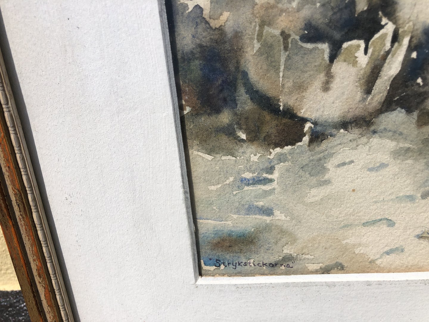 Johansson, Folke (1912-1980), „Strykstickarna“, Aquarell in gutem Zustand, aber mit einigen Schatten/Verfärbungen auf dem Passepartoutrahmen (siehe Foto). Maße mit Rahmen: 37,5X41,5 CM