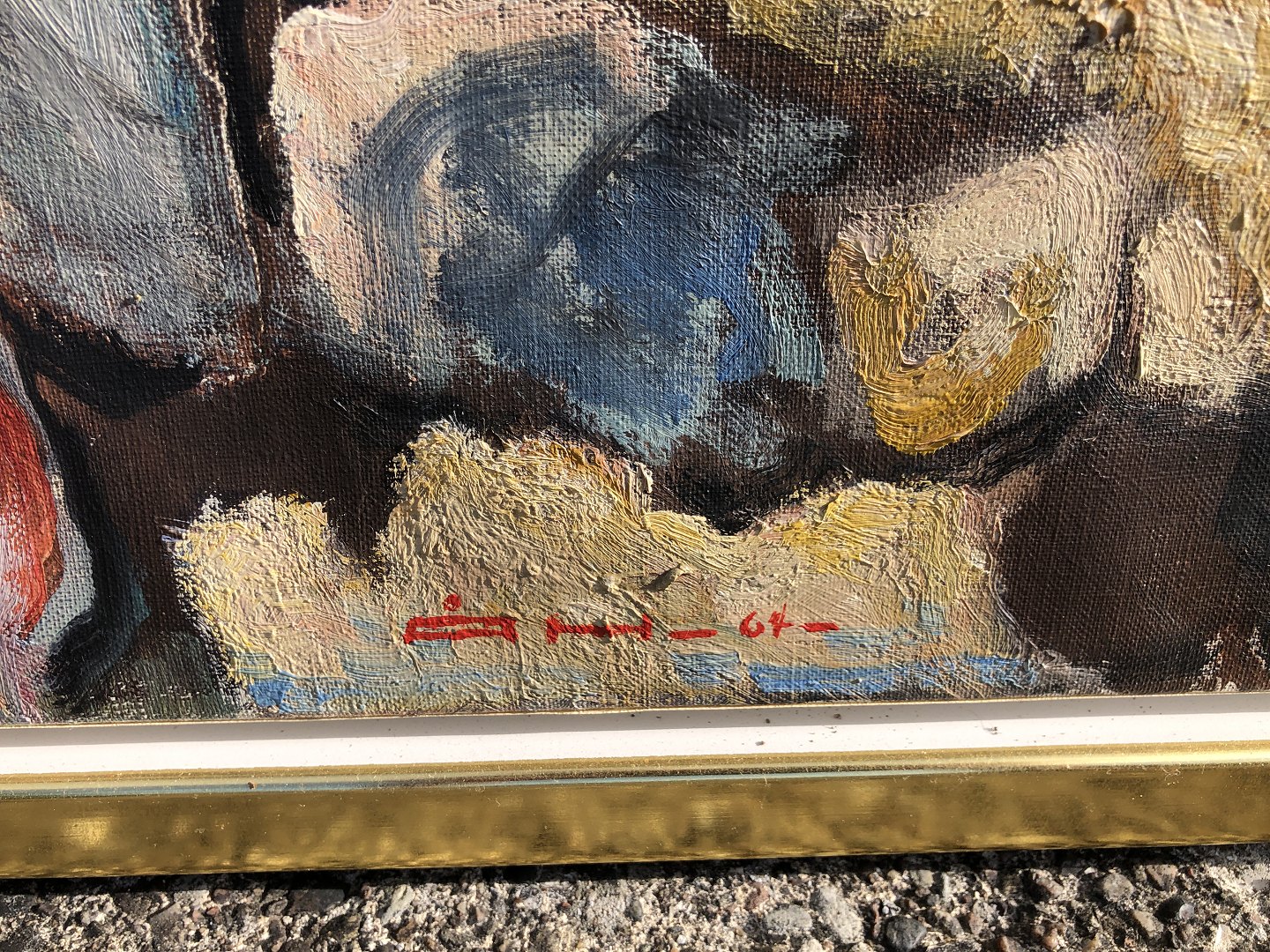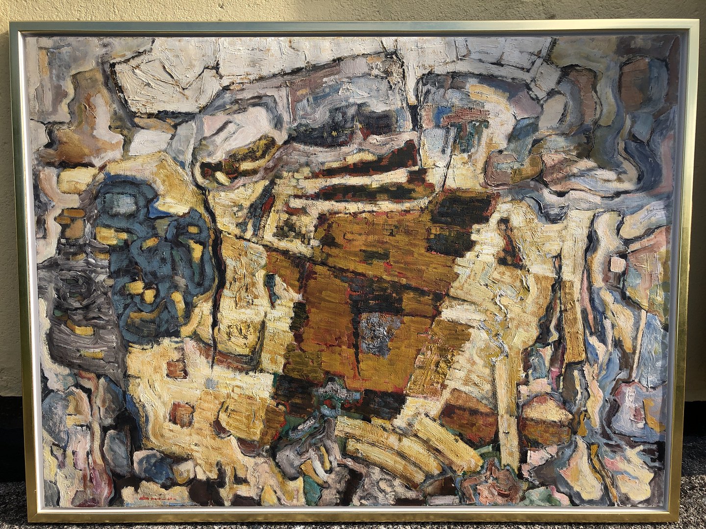 Aage (Kristian) Holm (1915-2007). Abstrakte Komposition, Ölgemälde auf Leinwand, signiert Å H 64, Maße mit Rahmen: 142x108 cm.
