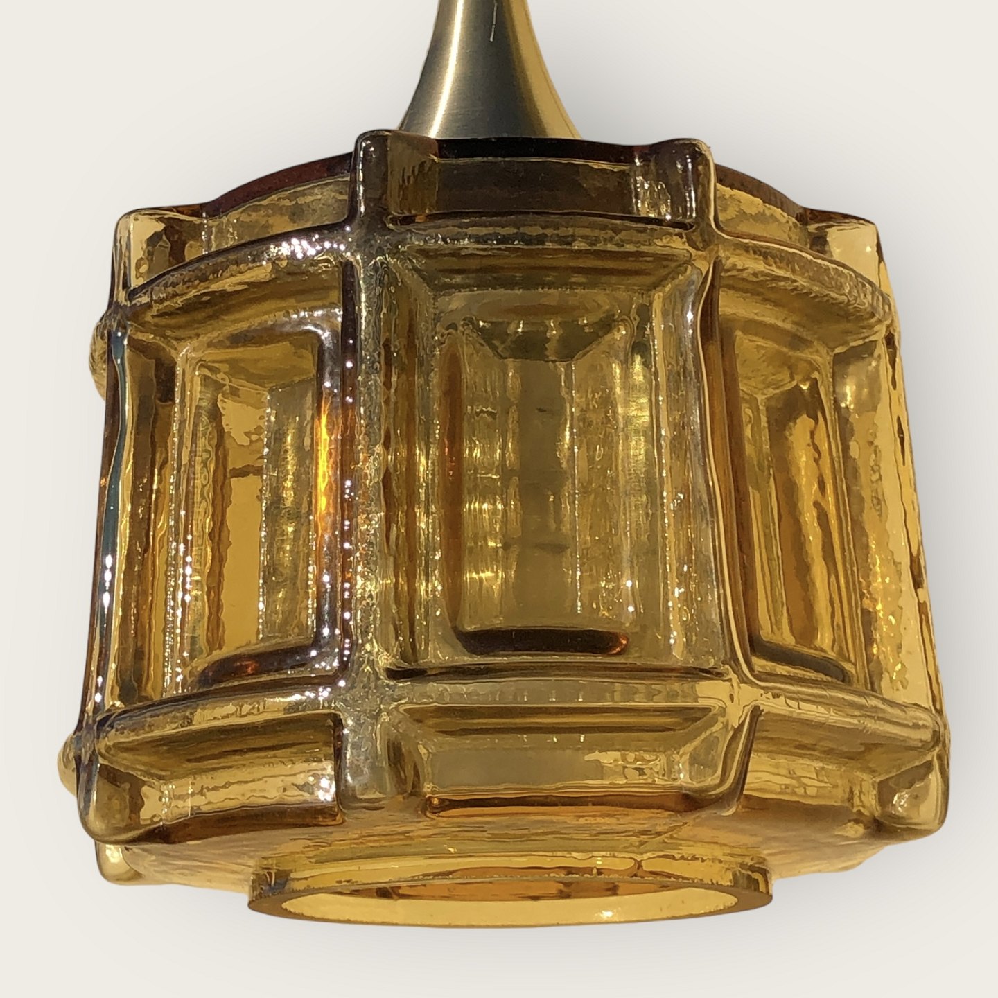 Bernsteinfarbene Glaslampe aus den 1970er Jahren, guter Zustand. Durchmesser ca. 20 cm, Höhe ca. 17 cm