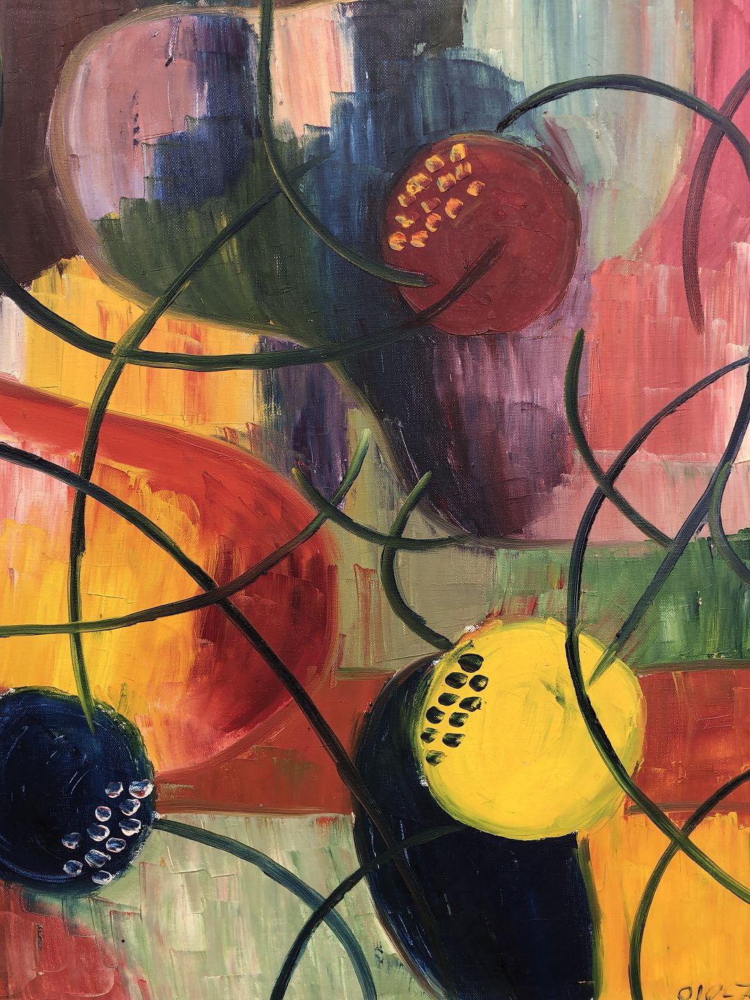 Ole Munch Hansen „Abstraktion“, Gemälde auf Leinwand, Maße mit Rahmen 68x60 cm