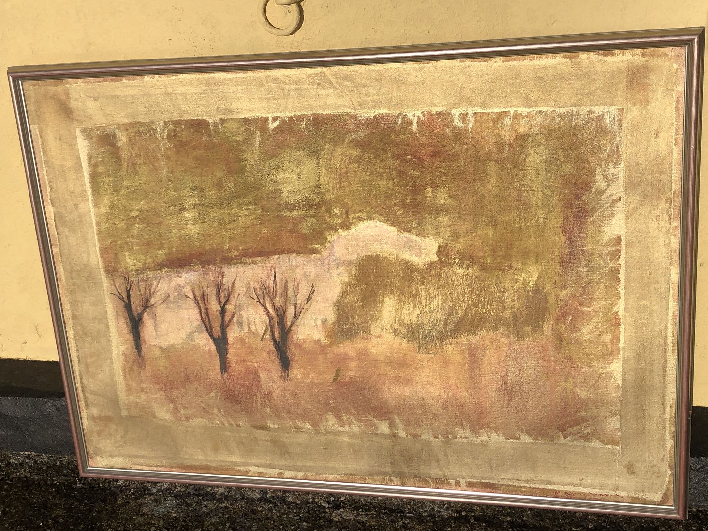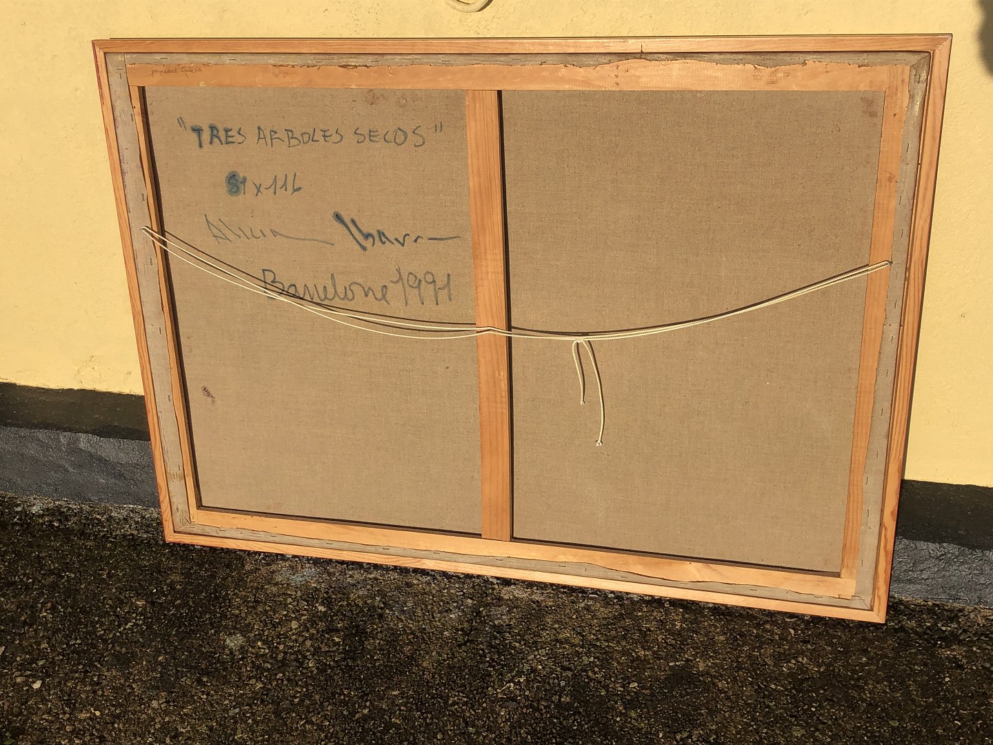 Alicia Ibarra (1961-), Olivengemälde auf Leinwand, „Tres Arboles Secos“, auf der Rückseite beschriftet: Propiedad Galeria, Barcelona 1991. Maße mit Rahmen 120 x 85 cm