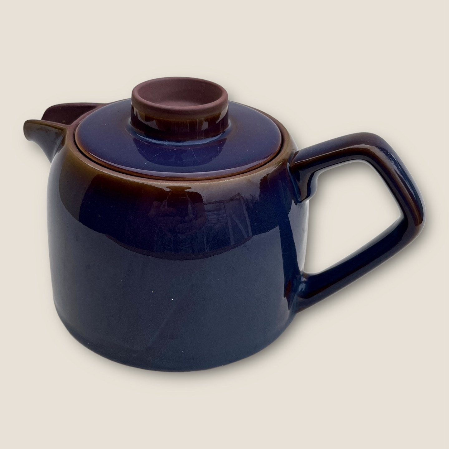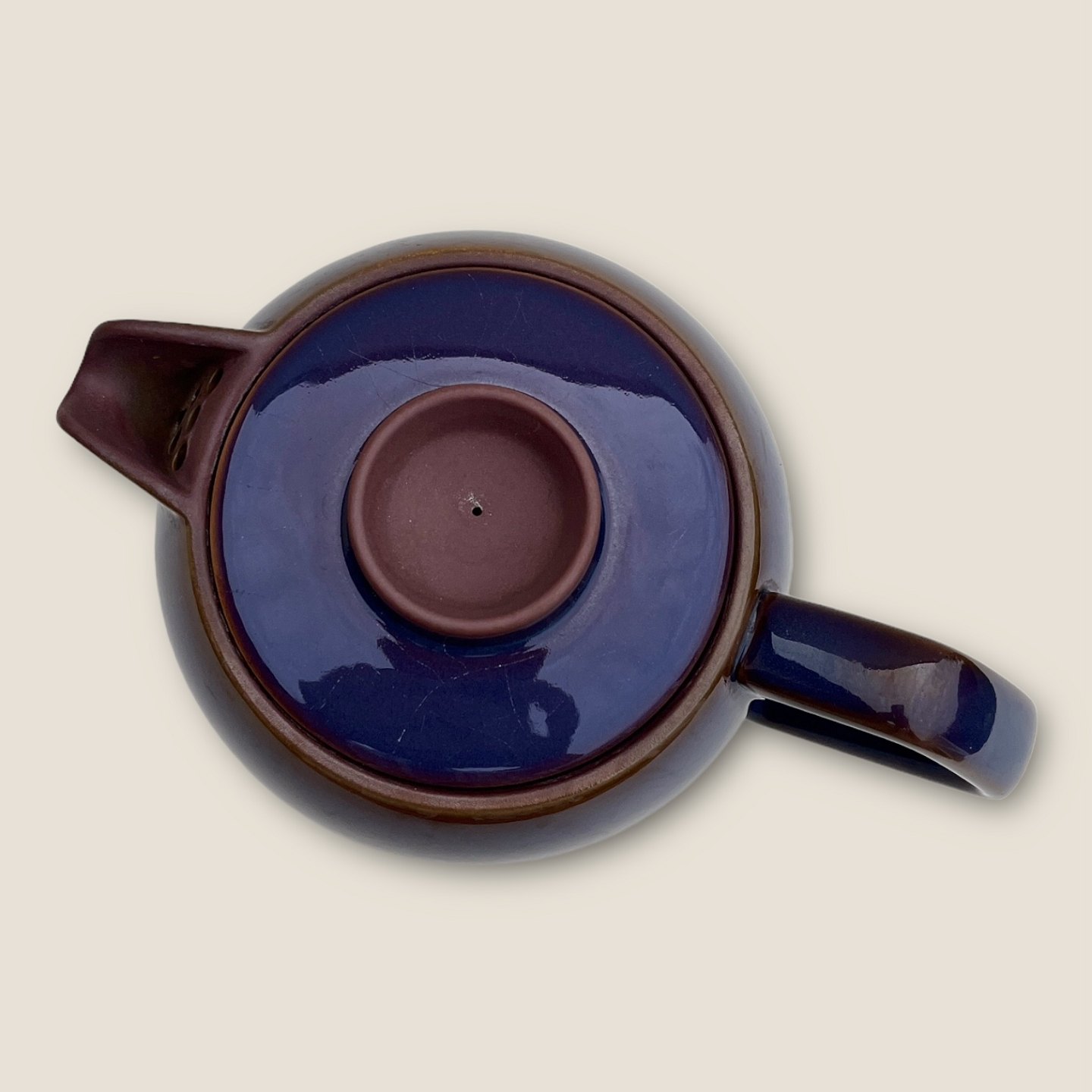 Royal Copenhagen, Aluminia, Prunella, Pflaumenfarben, Teekanne, 22 cm breit, 12 cm hoch, Design Magnus Stephensen *Mit einigen Rissen*