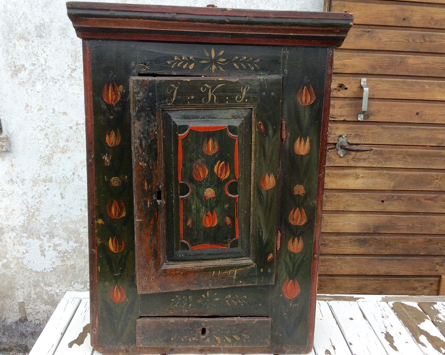 Older almue cupboard with flower painting 88cmH / 63cmB / 23cmD * Age-related patina *