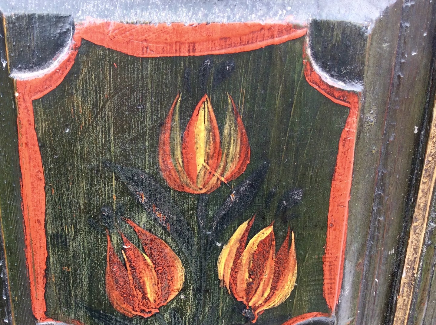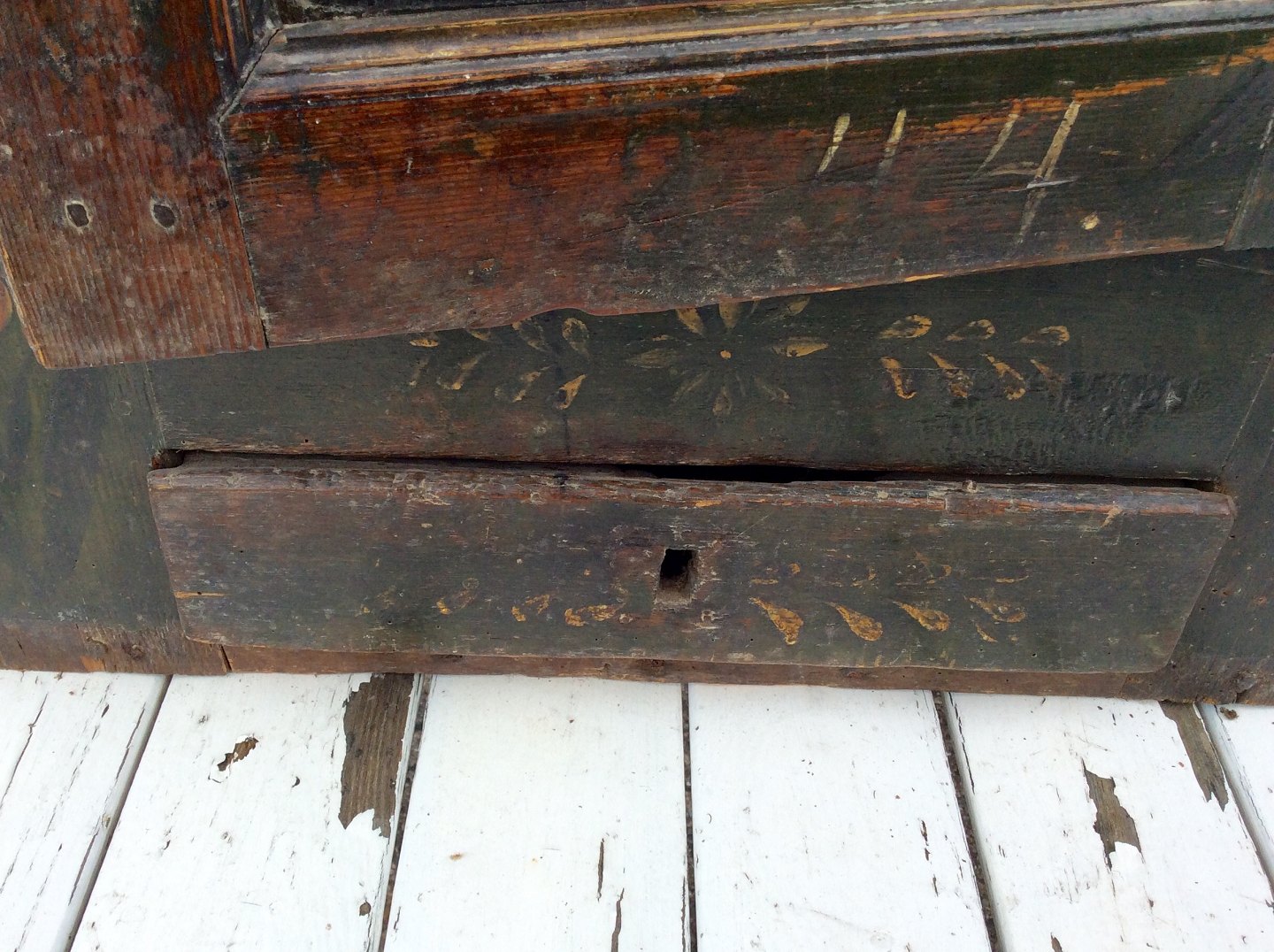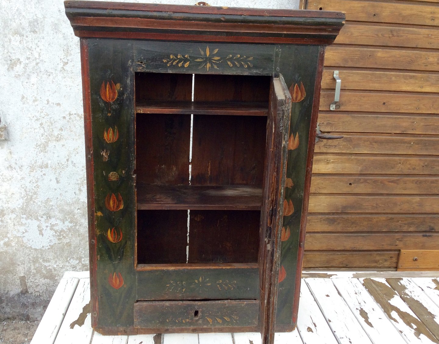 Ældre Almueskab med blomster dekoration, 88cm høj, 63cm bred, 23cm dyb *Aldersrelateret brugsspor*