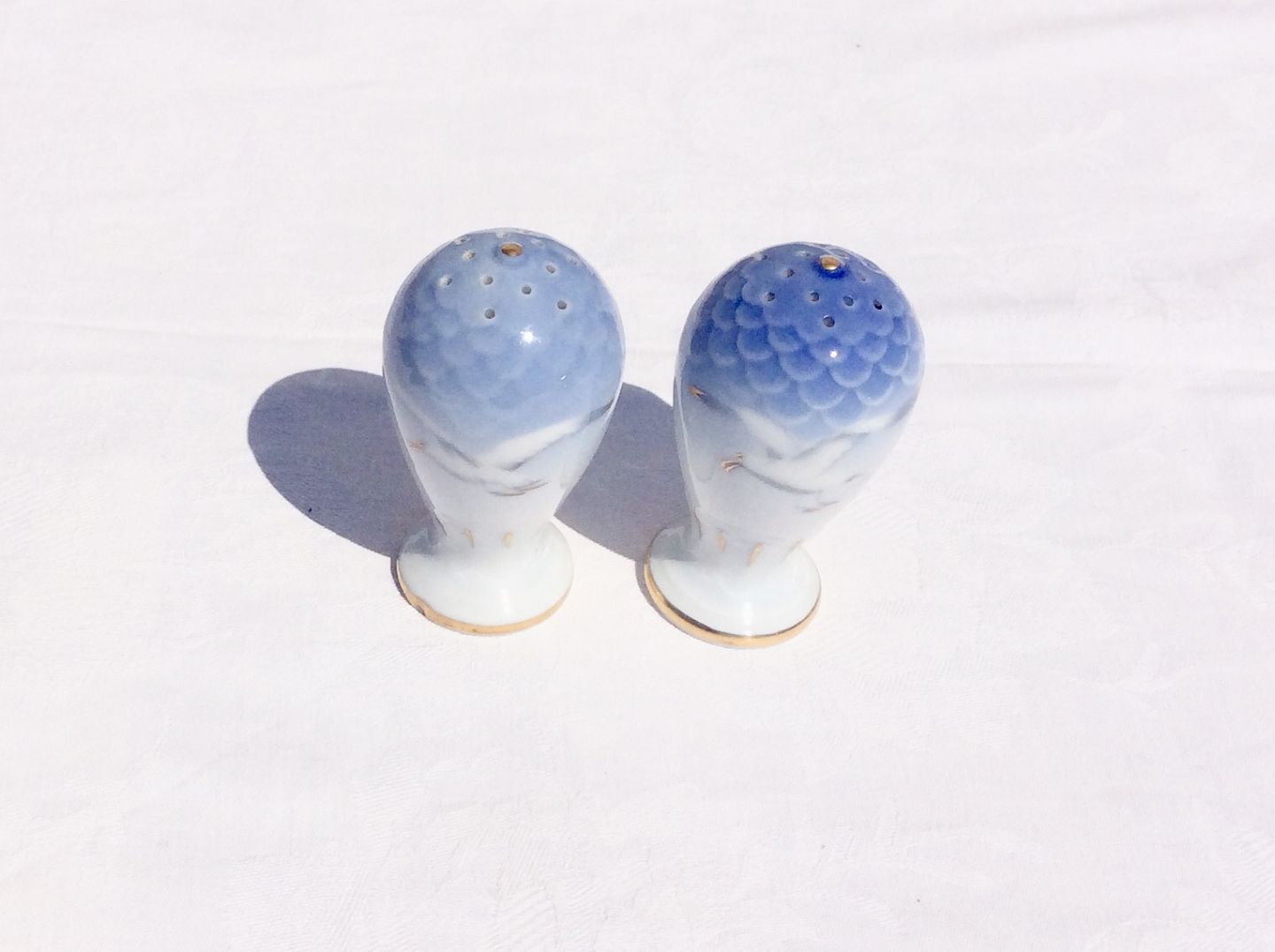 Bing & Grøndahl, Måge med guld, Salt og peber bøsser #B&G, 8cm høj, Design Fanny Garde *Pæn stand*