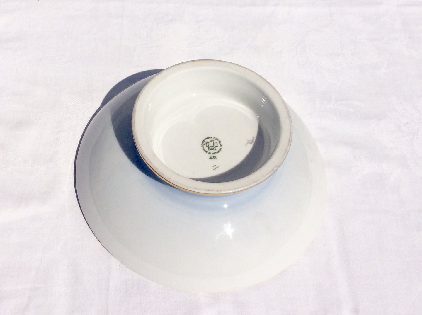 Bing & Grøndahl, Måge med guld, Kagefad på fod #428 #223 #B&G, 20cm i diameter, 7cm høj, Design Fanny Garde *Pæn stand*