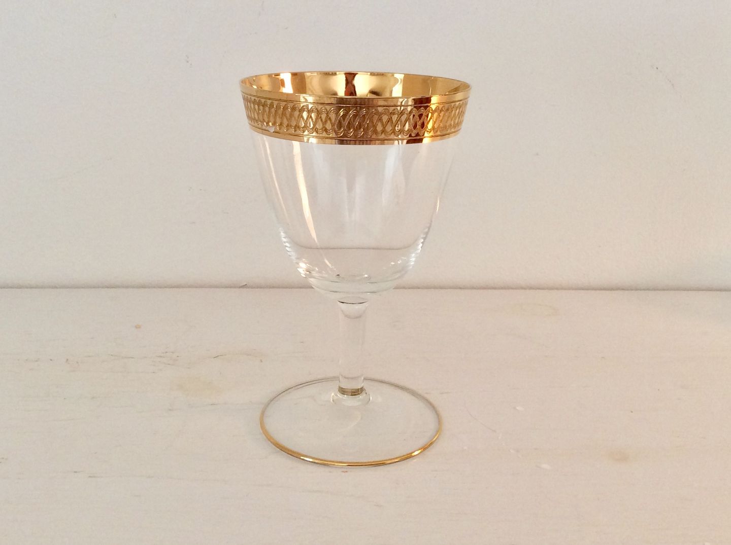 Lyngby Glas, Tosca, Hvidvin, 11,3cm høj, Krystalglas med guldbånd *Pæn stand*