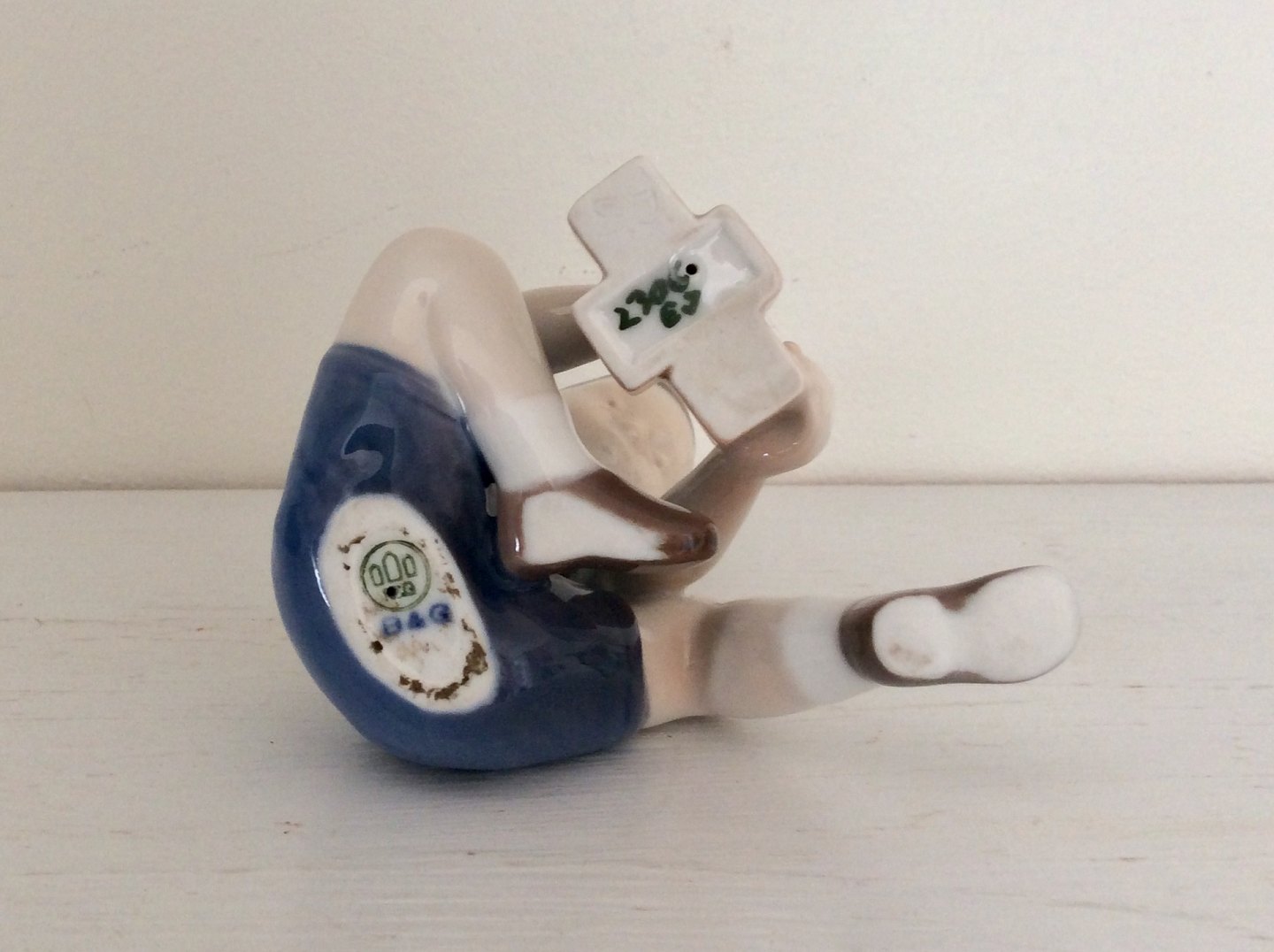 Bing og Grøndahl, Dreng med klodser #2306, 11cm høj, 10cm bred, Design Svend Jacobsen, 1.Sortering *Perfekt stand*