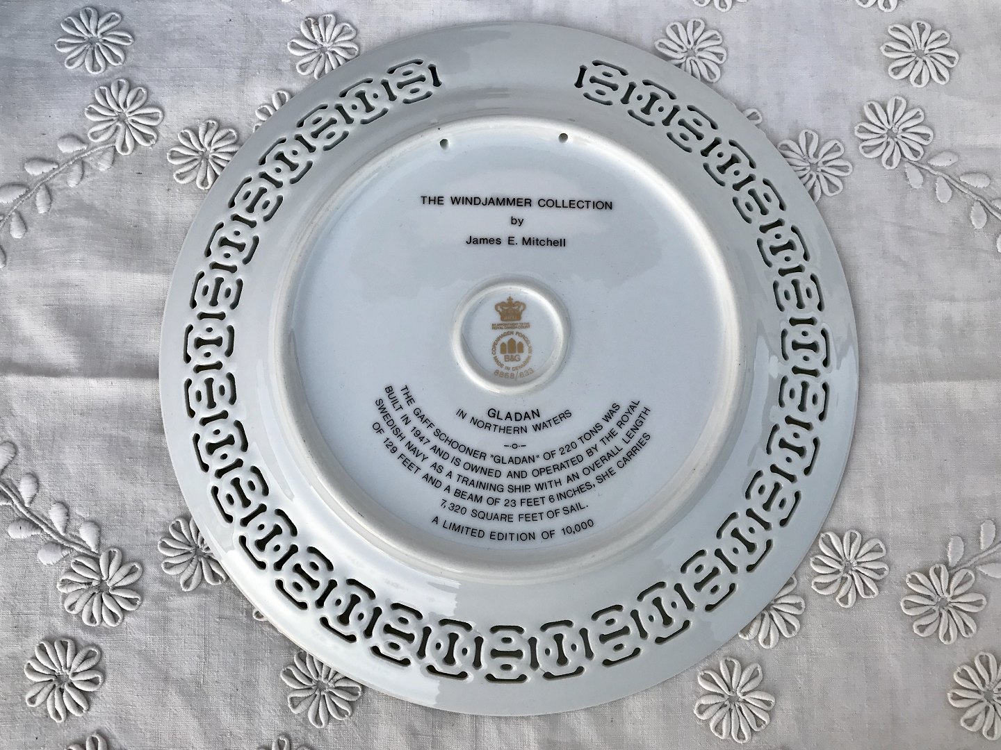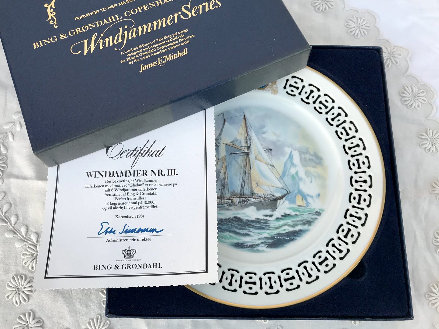 Bing & Grøndahl, Skibsplatte, Windjammer #3 “Gladan” i Nordisk hav, 28cm i diameter, Design James E. Mitchell *Perfekt Stand*