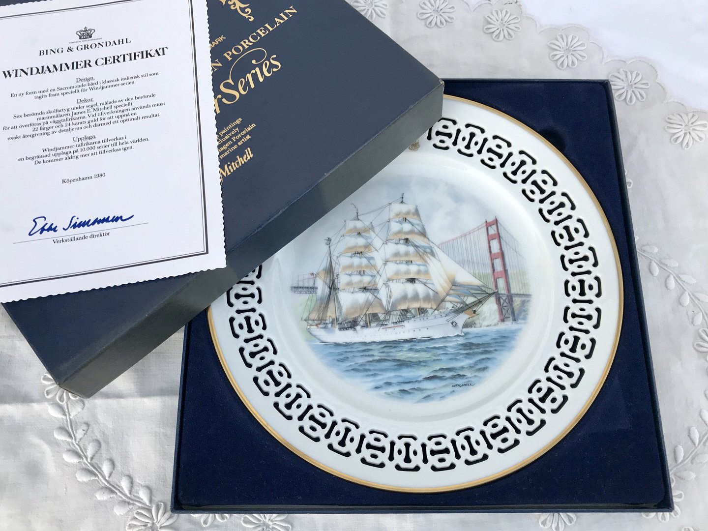 Bing & Grøndahl, Skibsplatter, Windjammer, Nr2 “Eagle” ved Golden Gate, 28cm i diameter, Design James E. Mitchell *Perfekt stand*