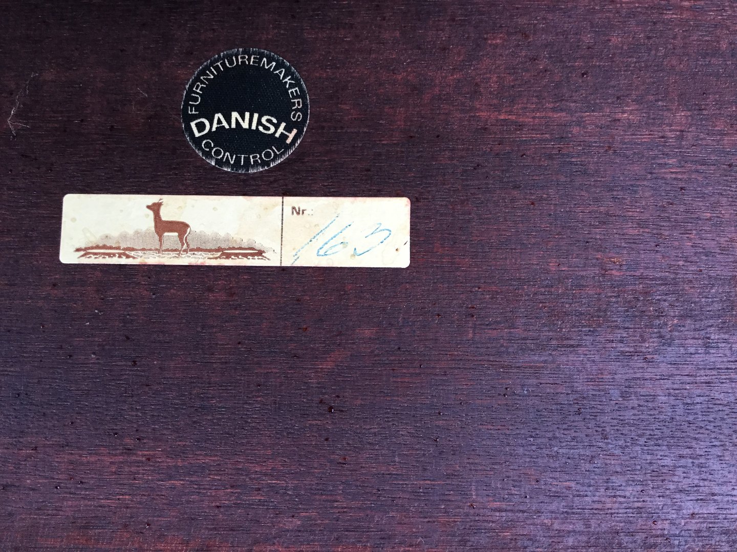 Haslev sofabord. Mahogni. Nogen farvenuancer på plade og stel, ellers pæn stand.
