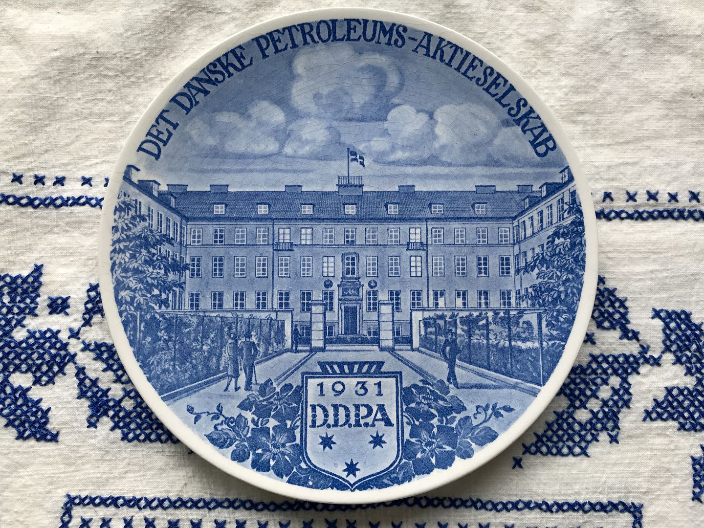 Royal Copenhagen, Aluminia, Ddpa- Det Danske Petruleums Aktieselskab, 1931, Fysiologisk Laboratorium, 16cm i diameter *Med Krakeleringer*