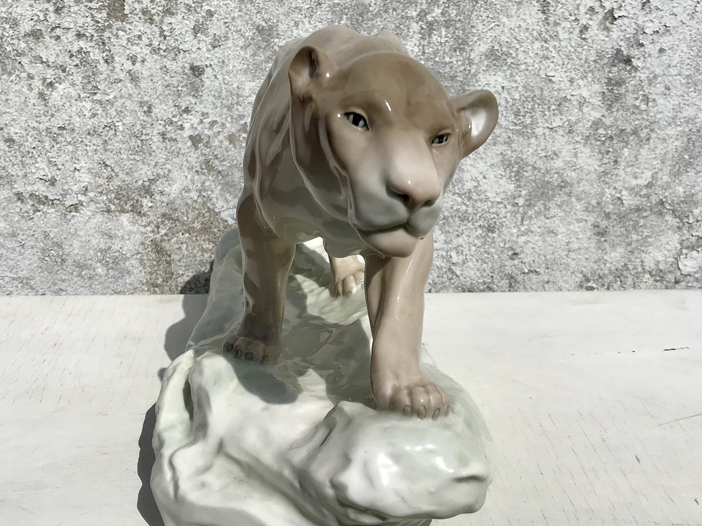 Stor figur af Bjergløvinde fra Østrig, 43cm bred, 24cm høj, Mærket: Strasser, Wien *Lille rift på bagpote ellers fin stand*