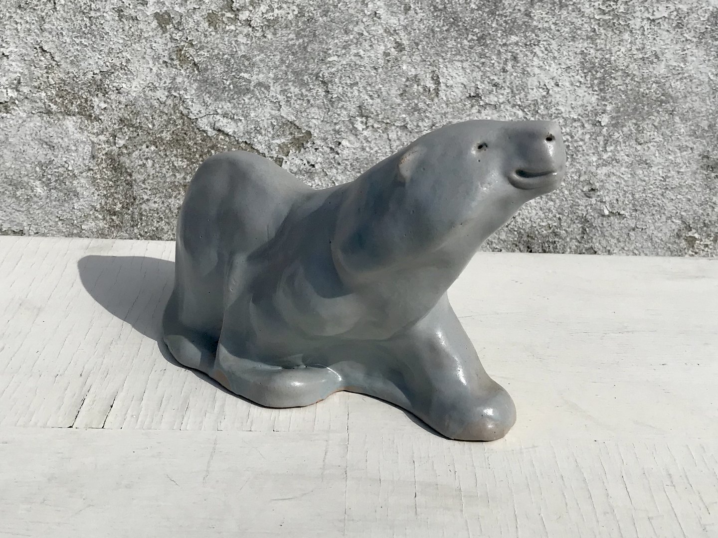 Keramik Isbjørn, Grå/Turkis Glasur, 21,5cm bred, 14cm høj, Design Povl Kyhn *Pæn stand*