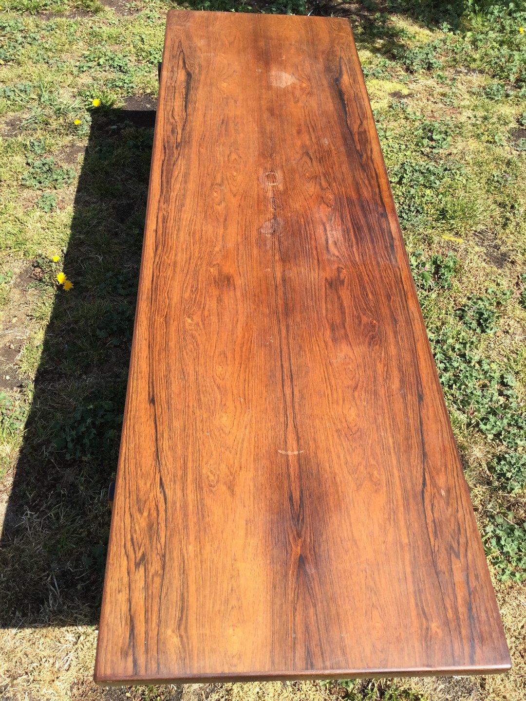 Sofabord i palisander fra 1960'erne. Danish modern. Fremstår med nogle mærker og ringe på bordplade. HxBxL 46x55x180 cm.
