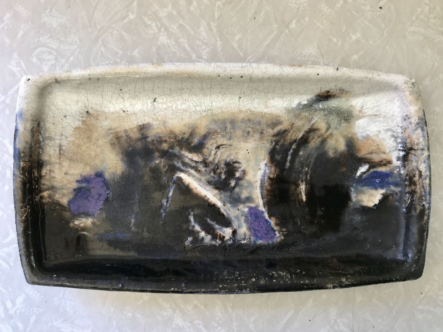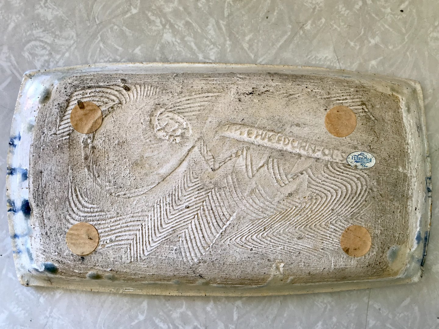 Jeppe Hagedorn Olsen, Bakkefad, Abstrakt motiv, Blå/hvid/sort glasur, 29,5cm bred, 16cm dyb, Fra eget værksted *Perfekt stand*