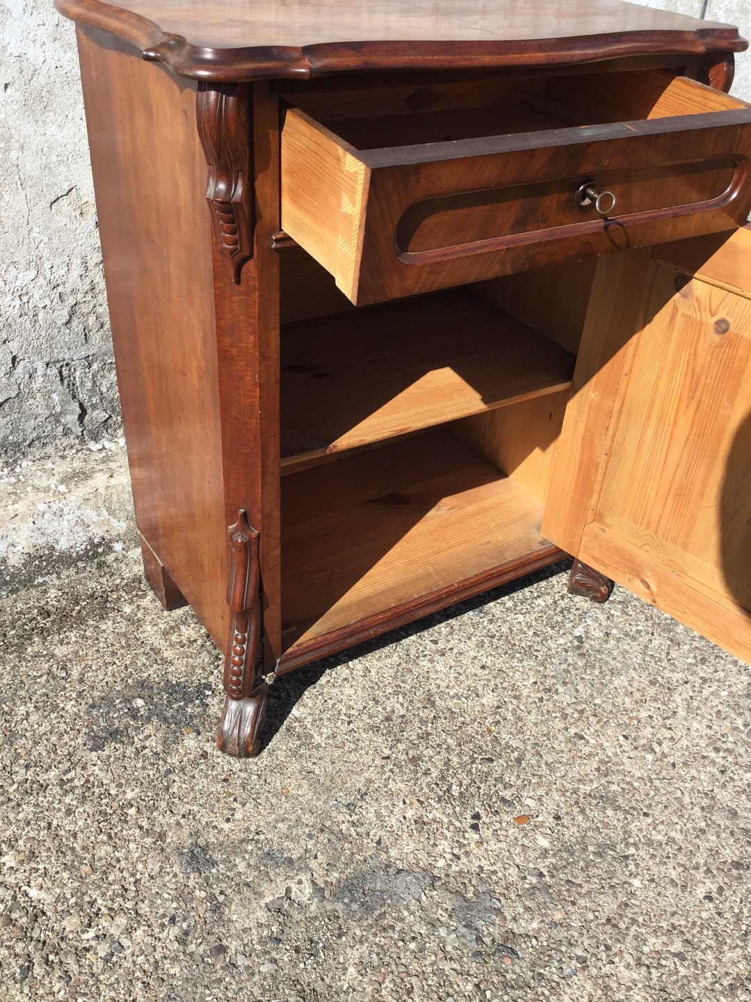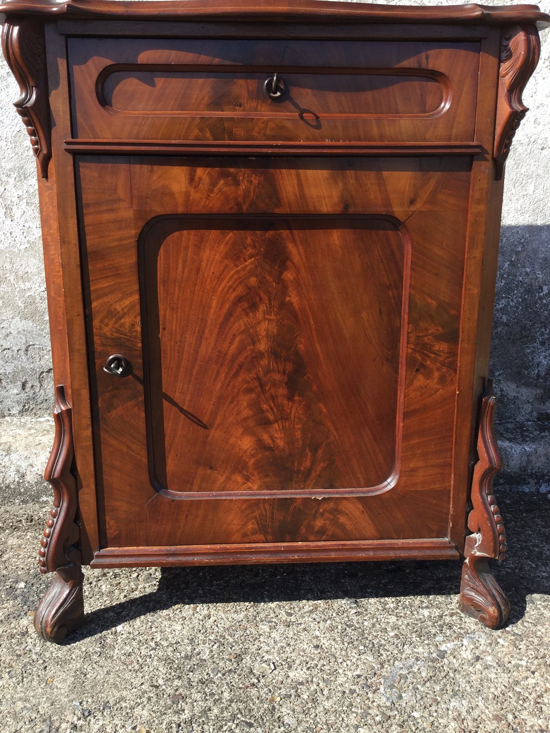 Konsolskab i mahognifiner. Pæn ældre stand. Mål: HxBxD 87x73x43