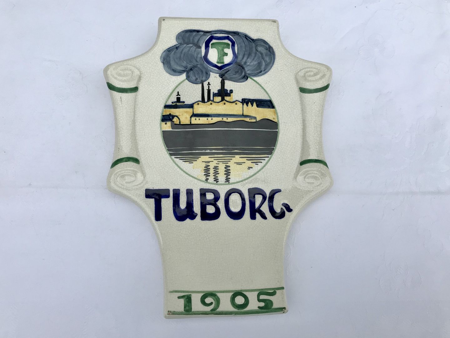 Aluminia, KalenderPlatte 1905, Tuborg 23,5cm høj, 18cm bred *Med krakeleringer*