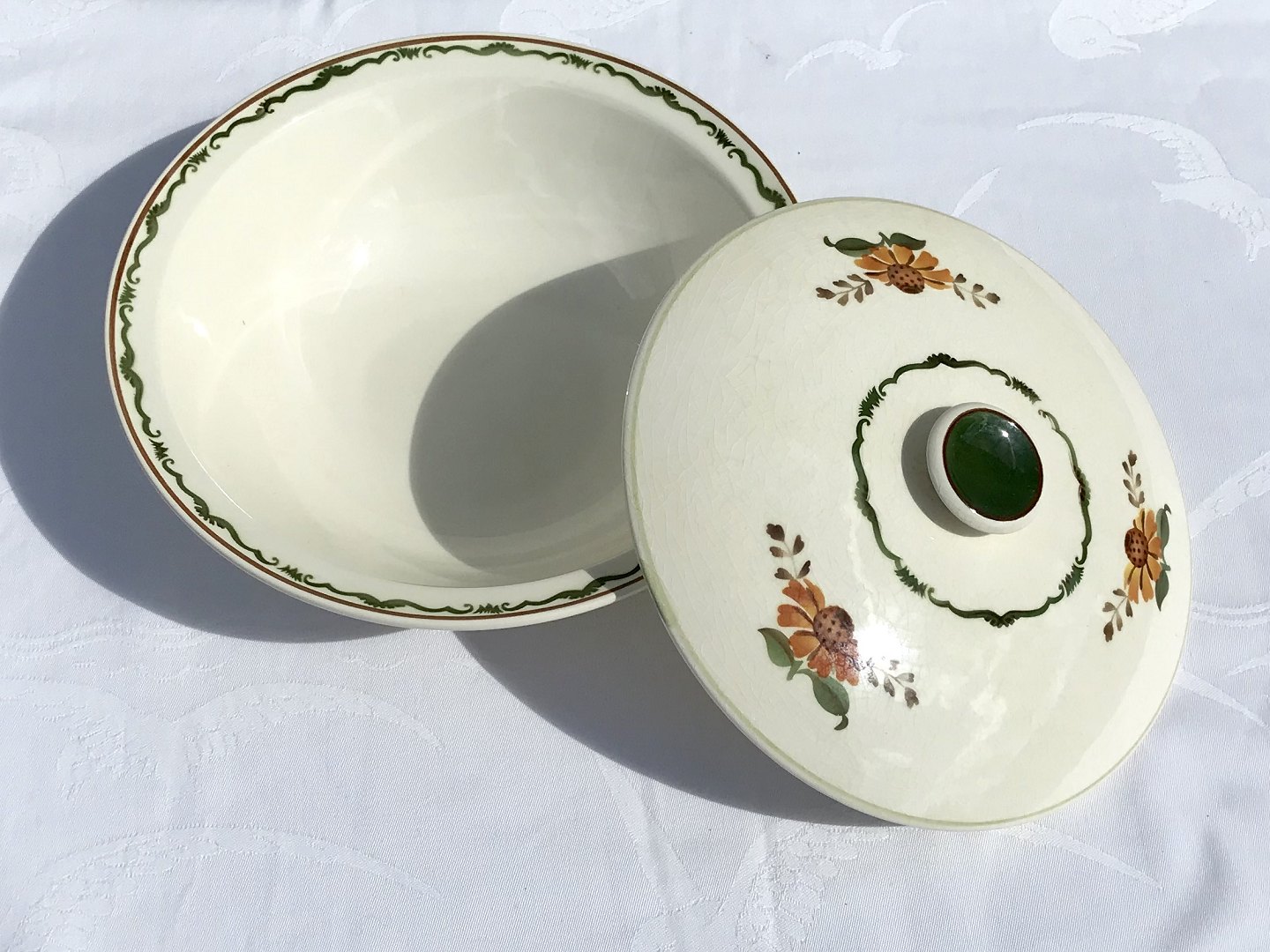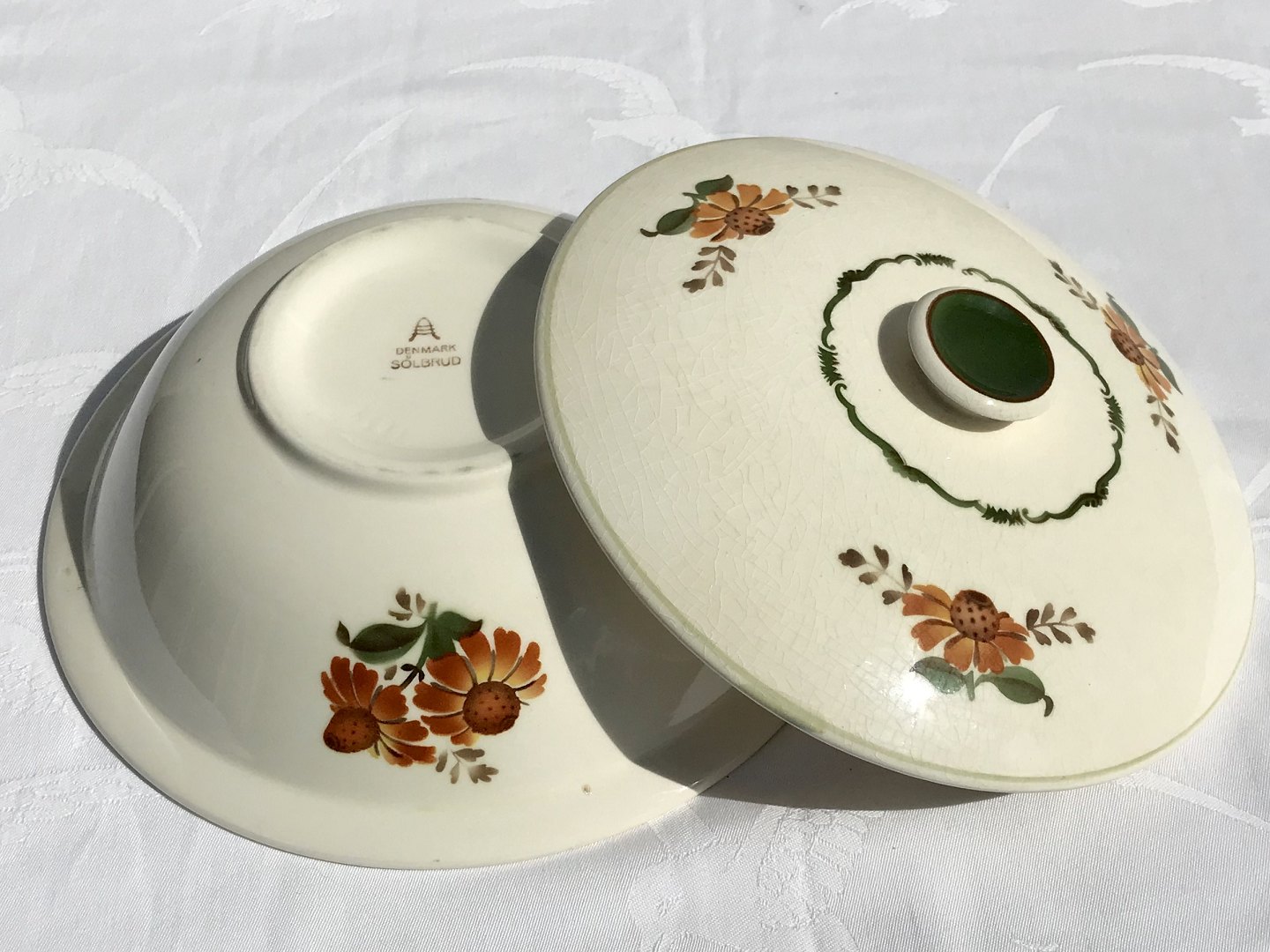 Royal Copenhagen, Aluminia, Sunburst, Serving bowl with lid, 23.5cm in diameter, Design Nils Thorsson * With crackles *