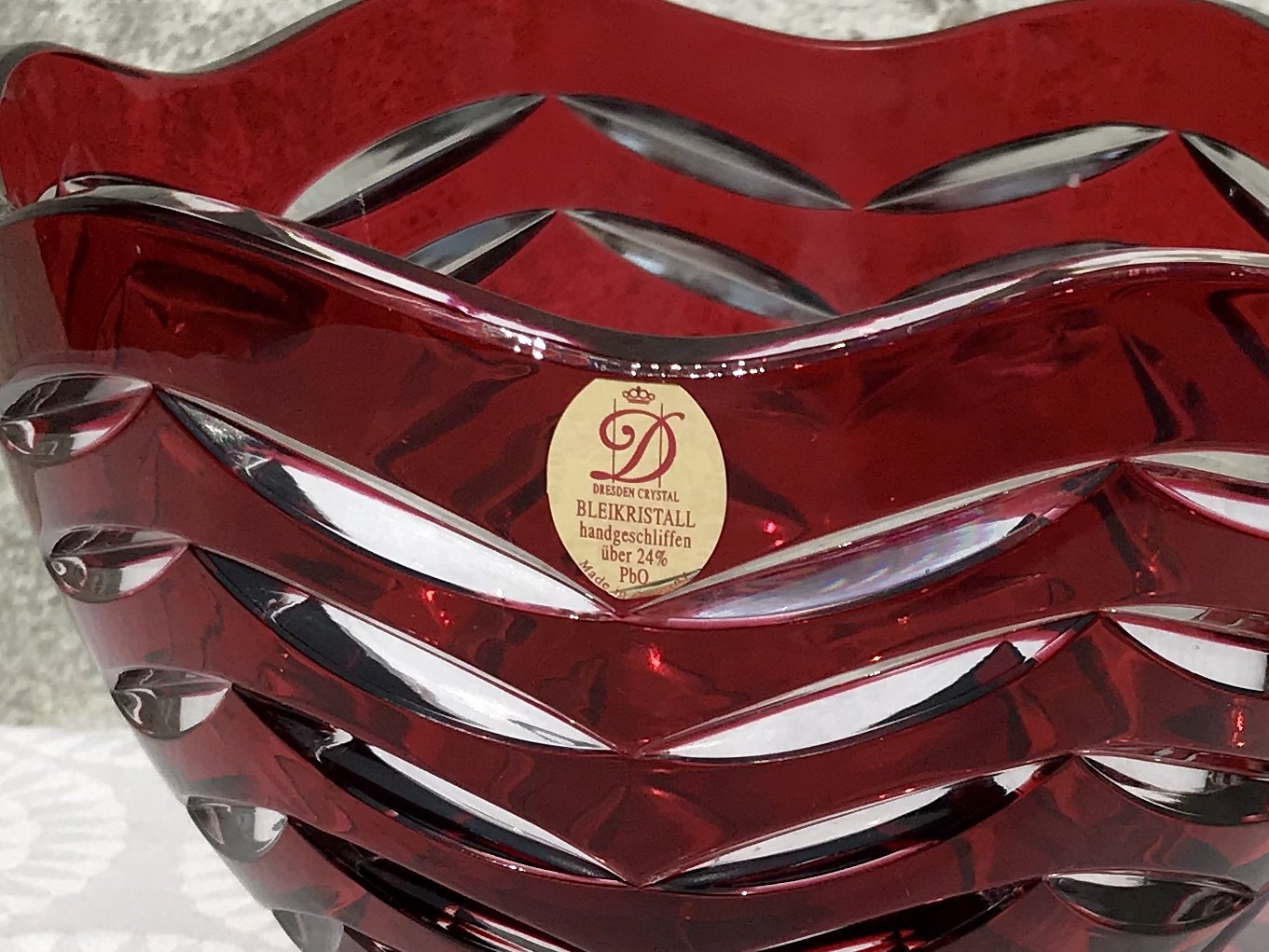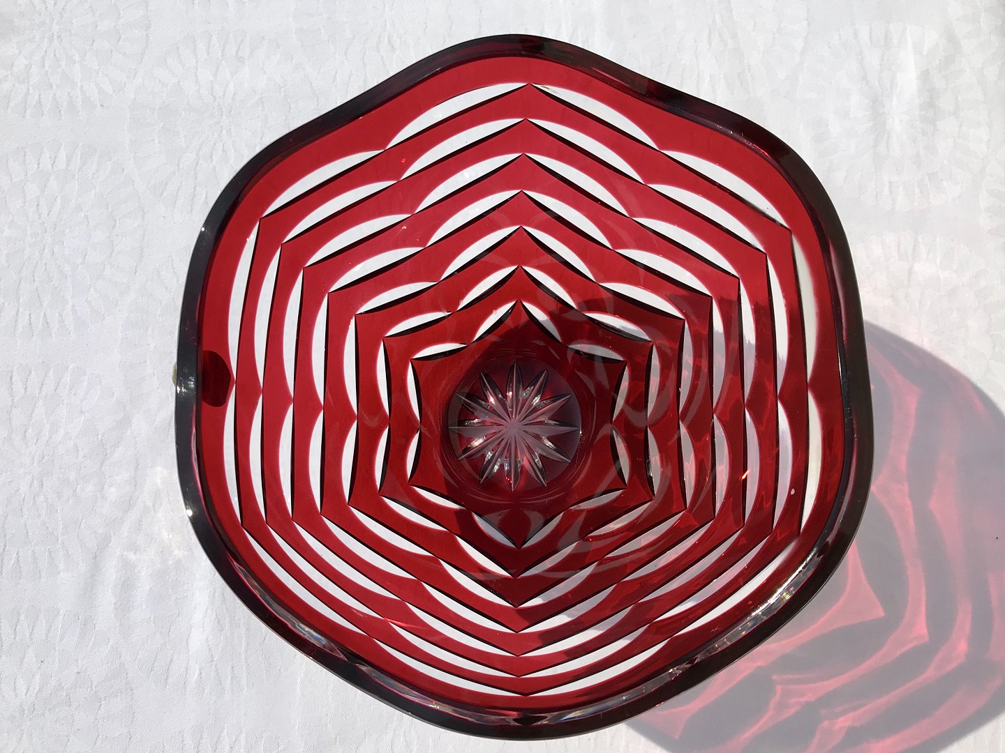 Rød krystal skål, Bleikristall, 14cm høj, 20cm i diameter, Made i Germany *Perfekt stand*