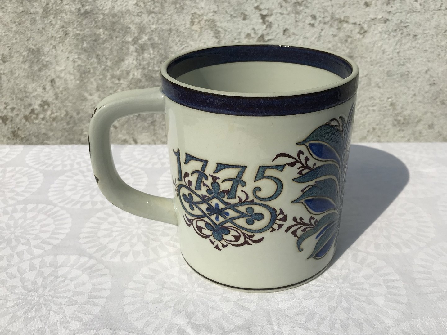 Royal Copenhagen, Aluminia, Jubilæumskrus 200 år for fabrikken, 14cm høj, 12,5cm i diameter, 1.Sortering, Design Nils Thorsson *Pæn stand*