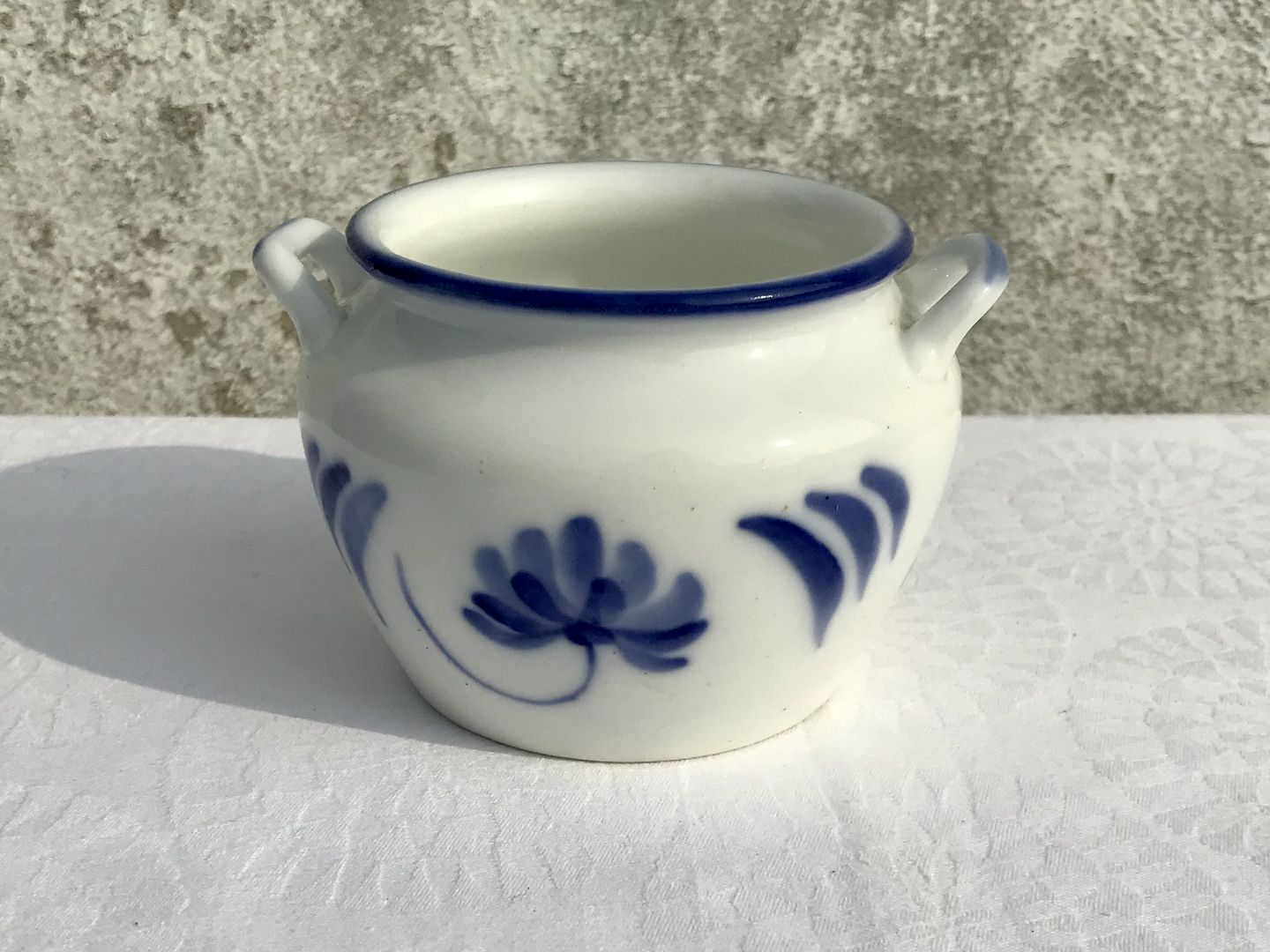 Royal Copenhagen, Krukke med øre, Blå blomster dekoration, 13cm bred, 9cm høj *perfekt stand*