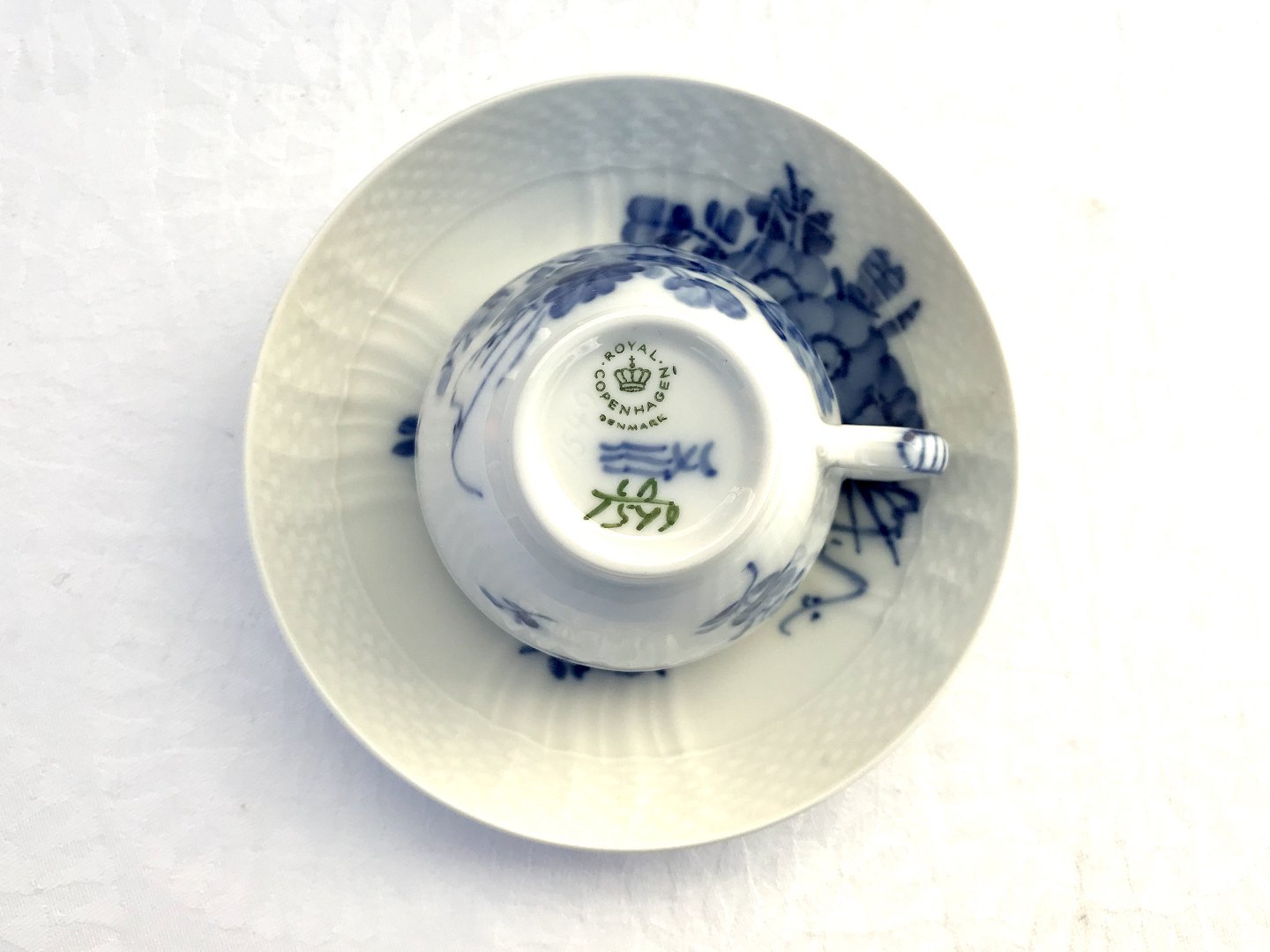 Royal Copenhagen, Svejfet blå blomst, Kaffesæt #10/1549, 5,7cm høj, 7,5cm i diameter, Blandet 1., 2. og 3.Sortering *Pæn stand*