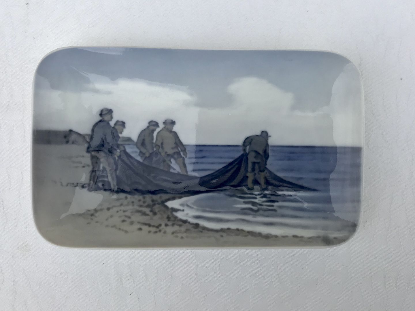 Royal Copenhagen, Aske fad #3726, 17cm bred, 10,5cm dyb, Fiskere ved stranden *Perfekt stand*