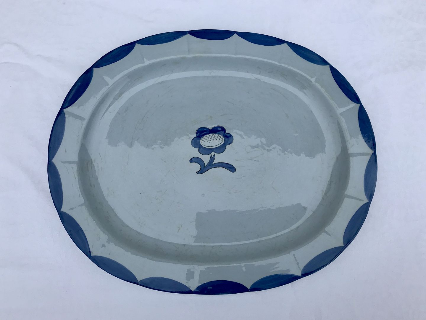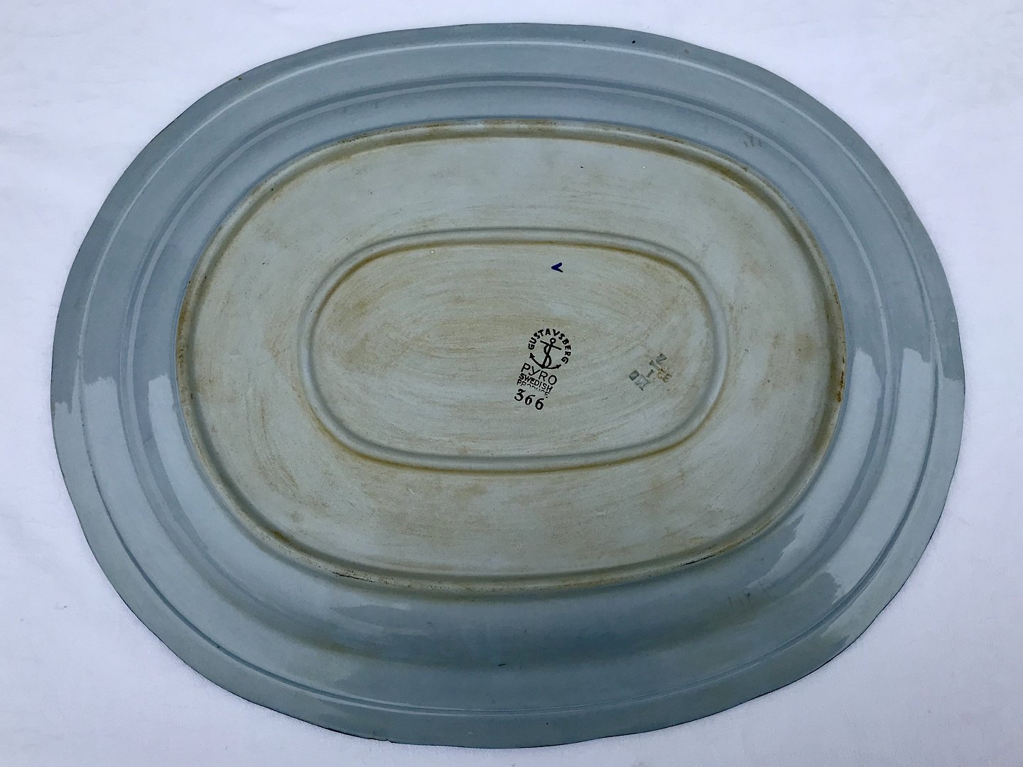 Gustavsberg, Blå pyro, Serveringsfad, 33cm bred, 27cm dyb, Nr. 566, Design Wilhelm Kåge *Krakkeleret*