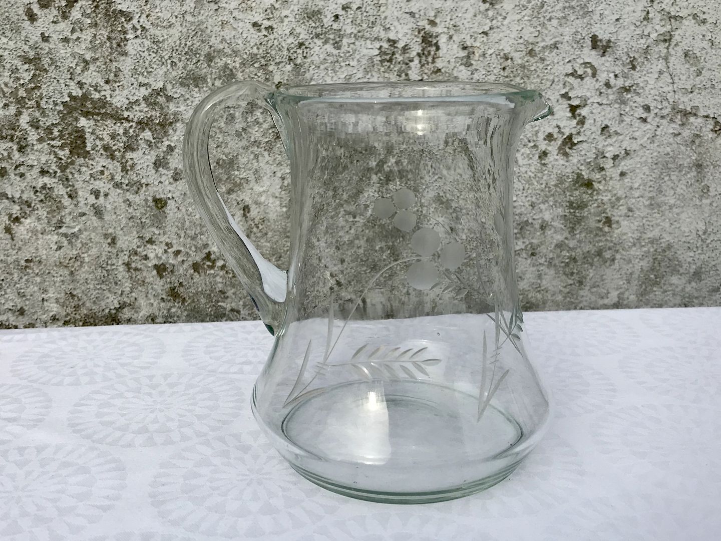 Glas kande, Med blomster slibninger, 16cm høj, 16cm i diameter *Pæn stand*