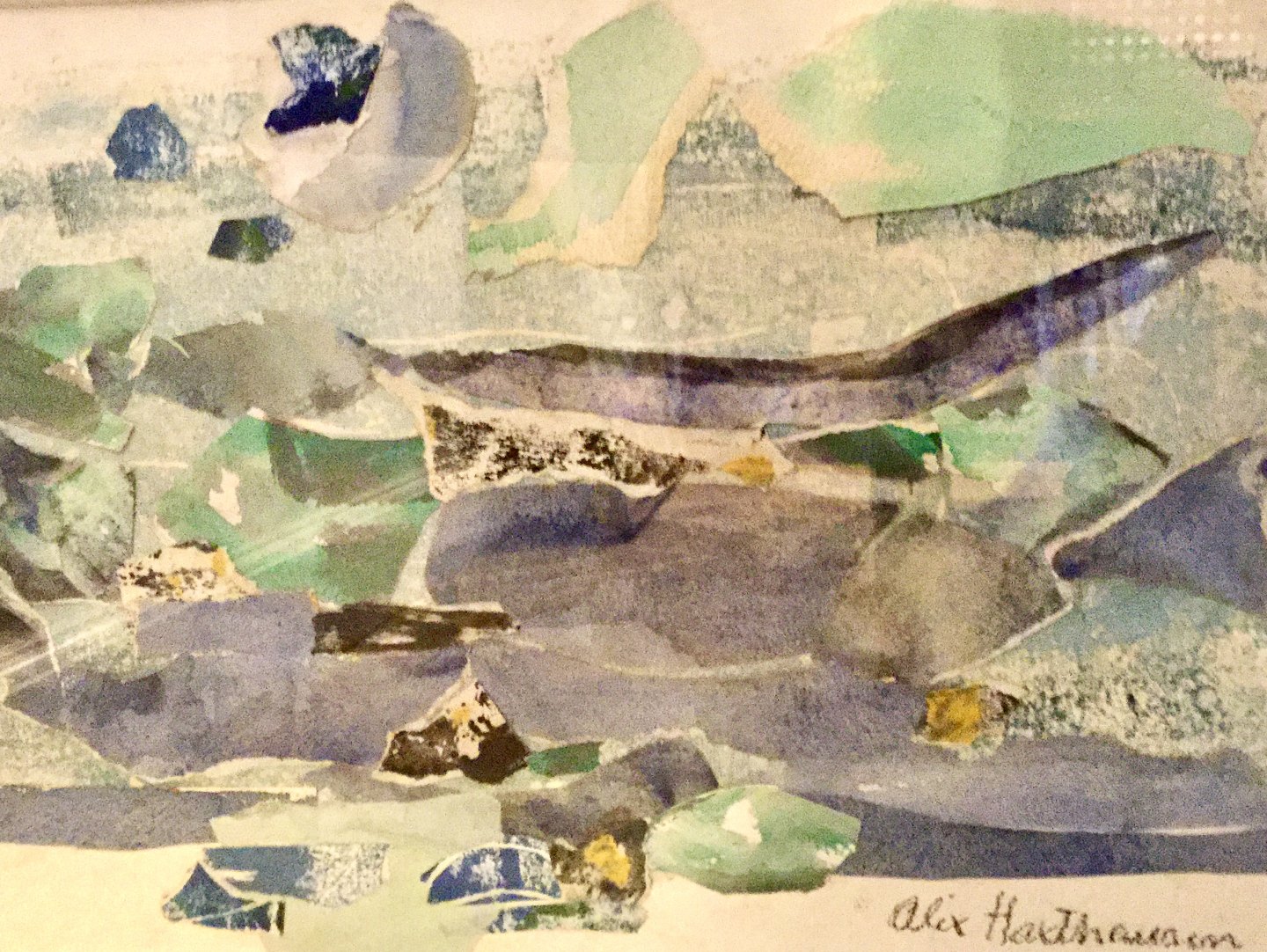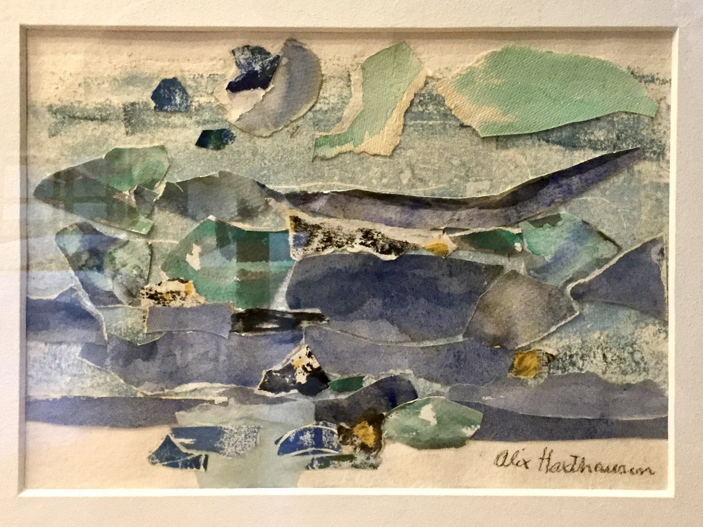 Alix Haxthausen (1902-1988). Mix media, Collage, akvarel i paspatoutramme. Fin stand. Mål: 20x28 cm, med ramme: 36x43 cm.