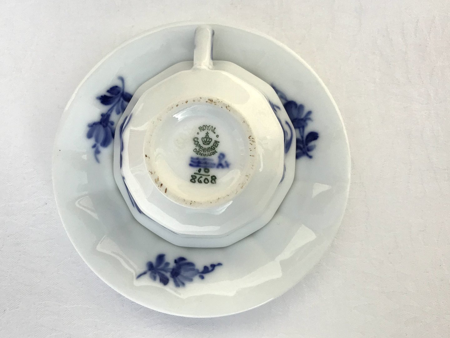 Royal Copenhagen, Blå blomst, Kantet 2. & 3. Sortering #10/8608, Kaffesæt, 9cm i diameter, 5,5cm høj, Pæn stand*