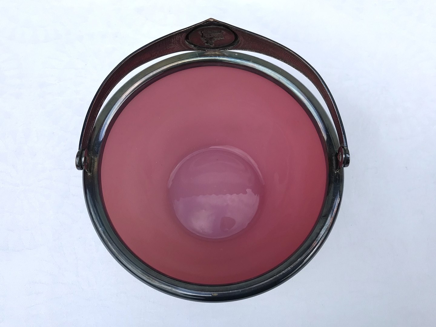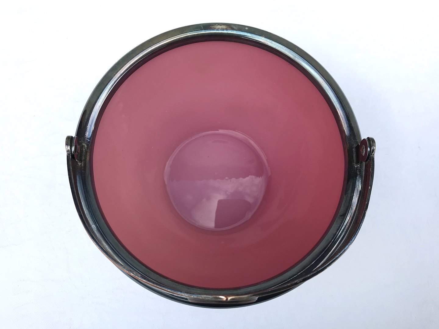 Kandis skål, Rosa & hvid Opalglas, 7cm høj, 13,5cm i diameter, Hank i forsølvet messing *Pæn stand*