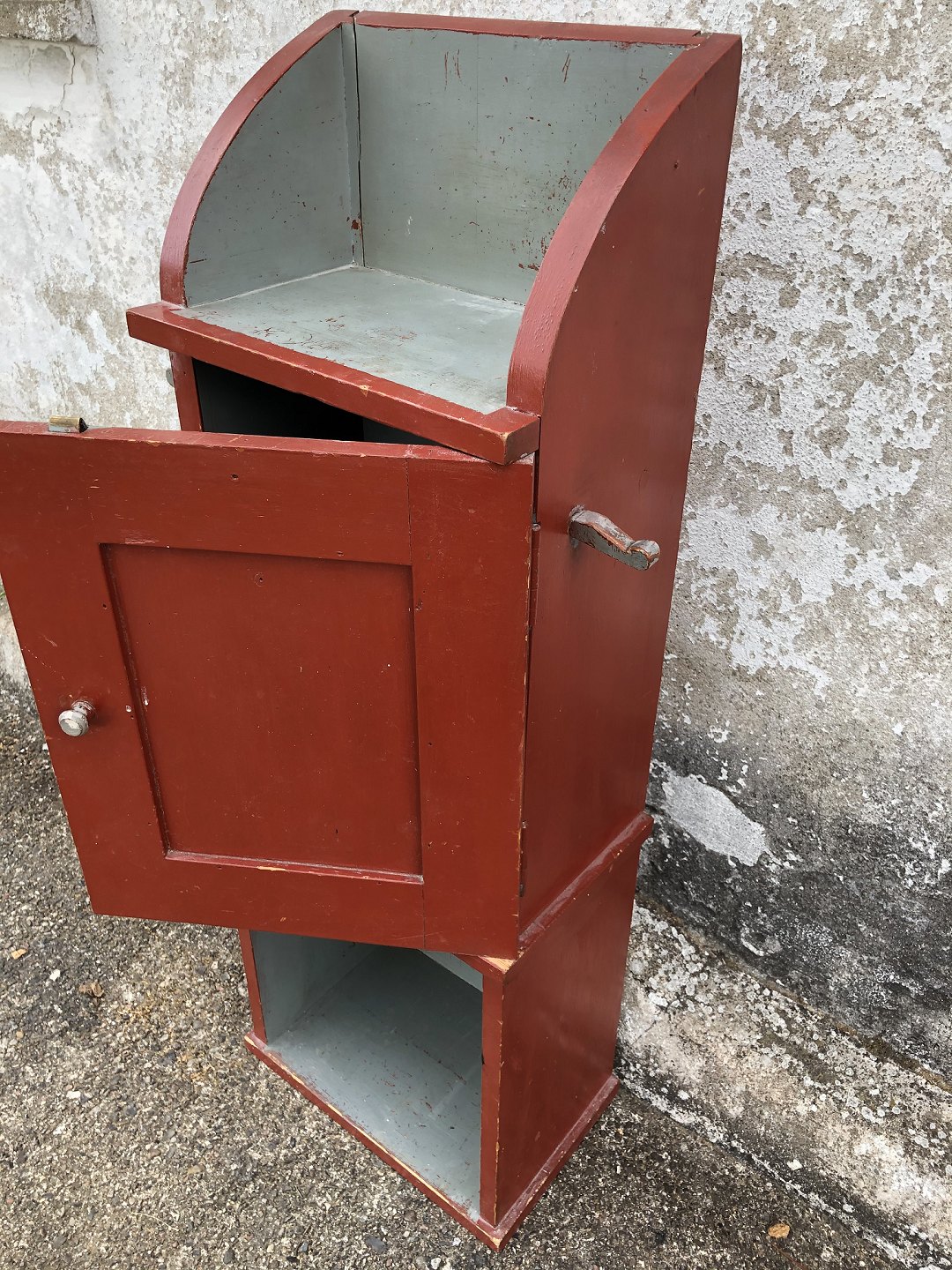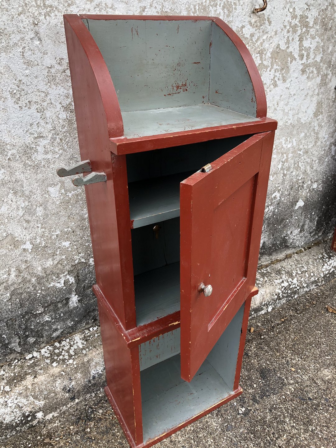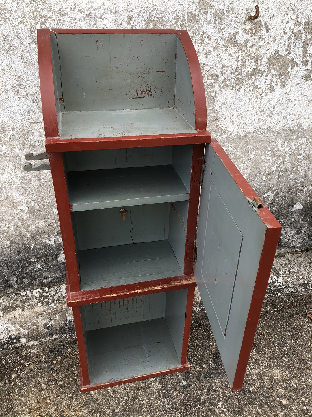 Prison cabinet in painted wood with hand-cut hooks, originated from a cell in Nyborg State Prison. Cabinet for private storage for the individual prisoner. Dimensions: 110x37x25 cm