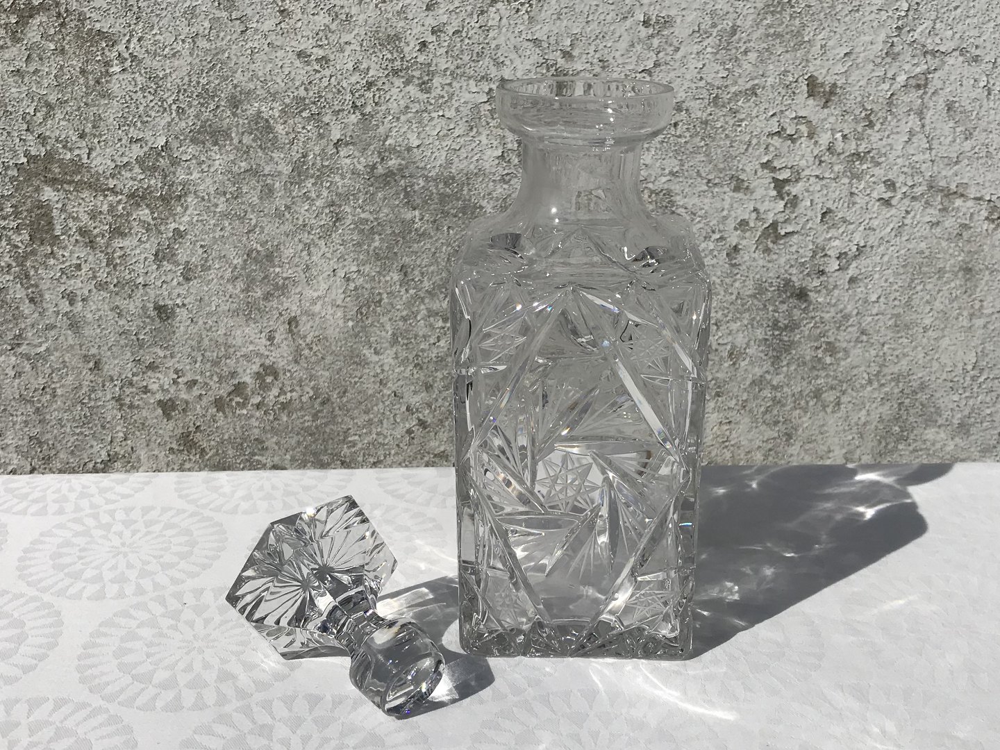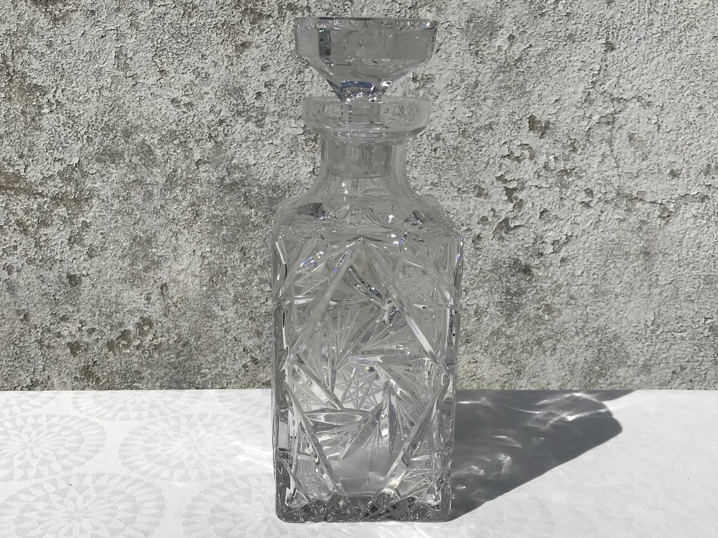 Whiskey krystal karaffel, Med stjerne slibninger, 24,5cm høj, 9cm bred *Pæn stand*