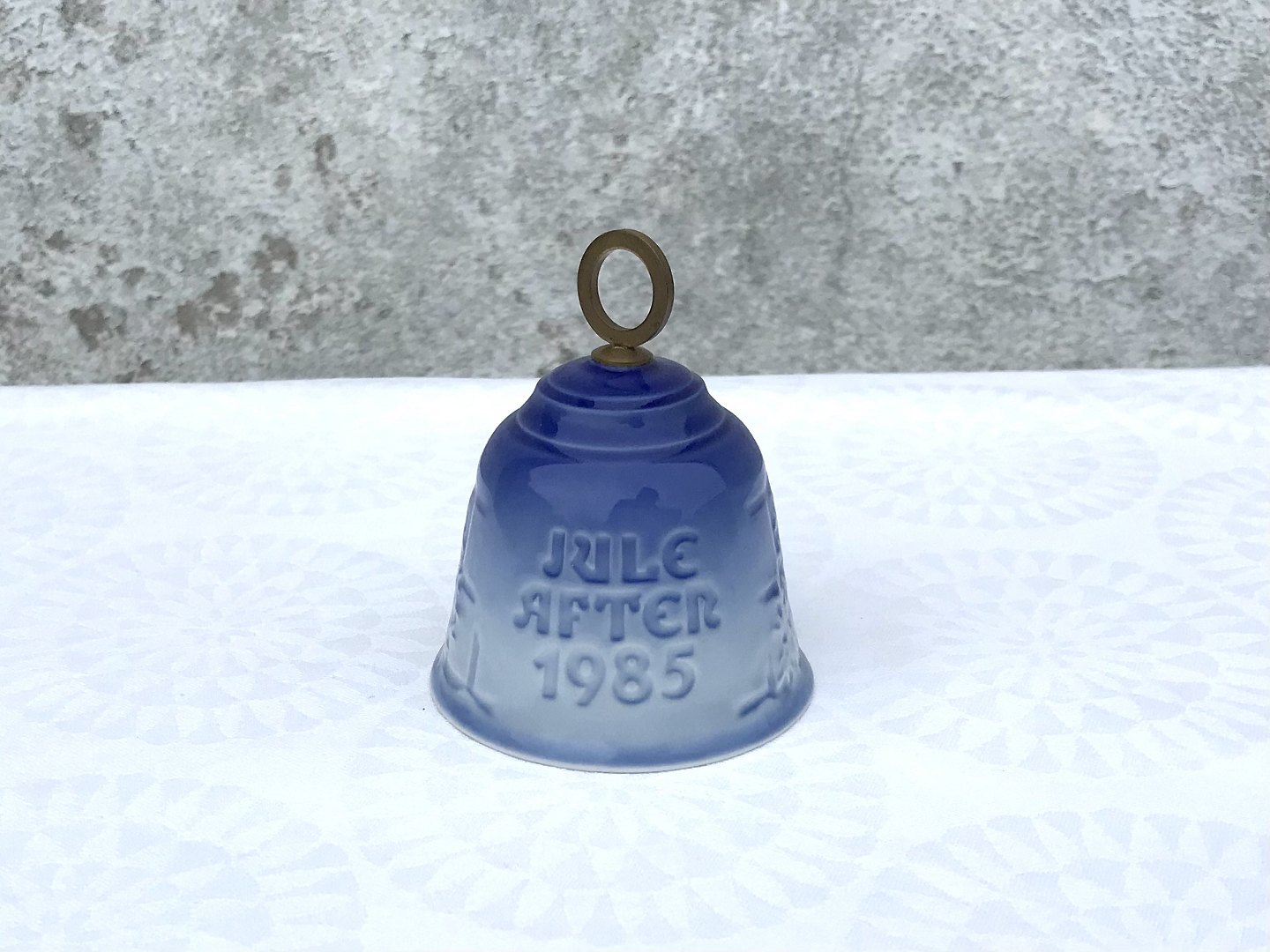 Bing & Grøndahl, Juleklokke, 1985, Jul i den gamle gård, 6,5cm i diameter, 8,5cm høj, Design Edvard Jensen *Perfekt stand*