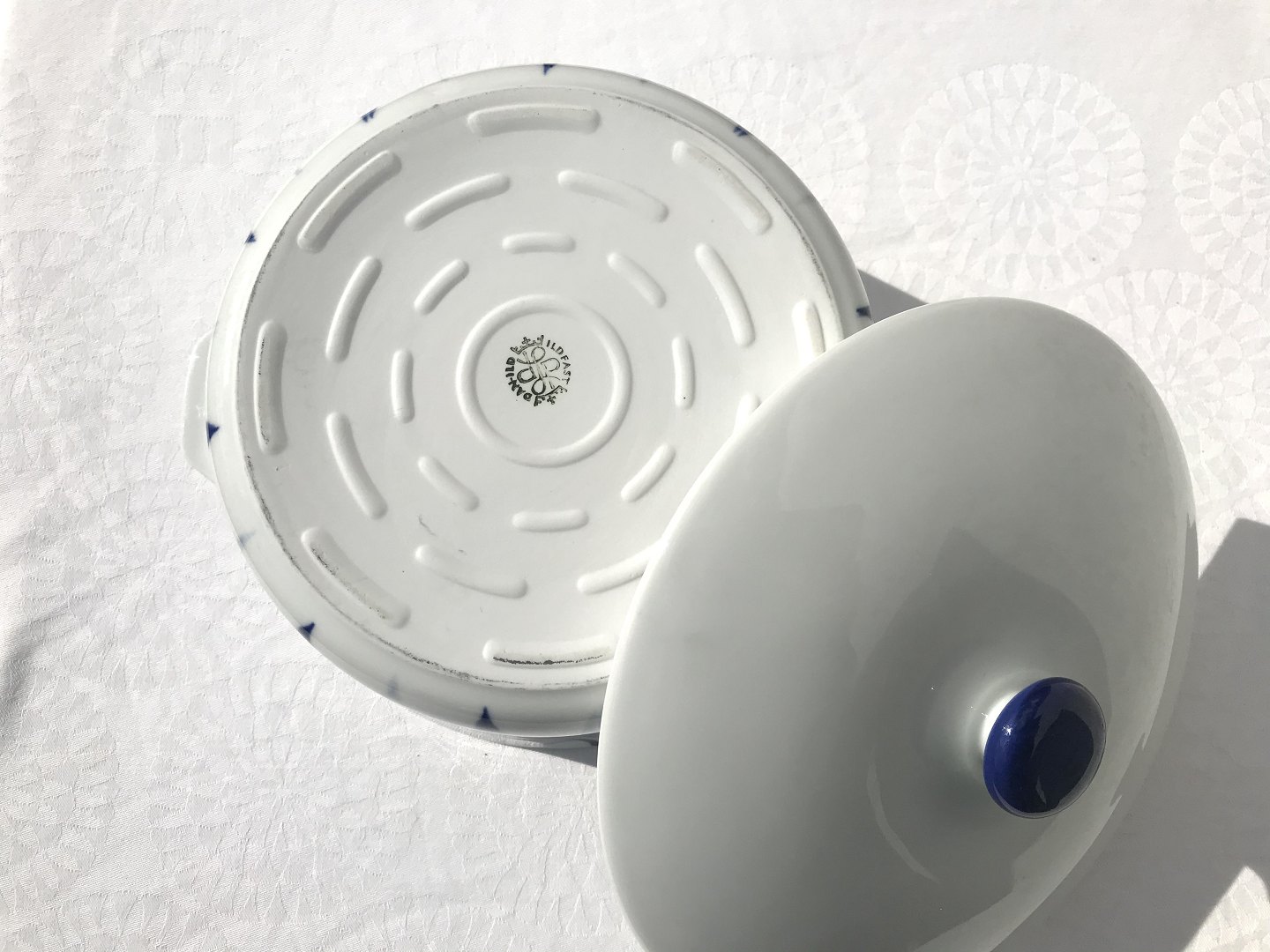 Lyngby, Danild, Harlekin, Blå flamme, Stor gryde med låg, 13cm høj, 24cm i diameter, Design Axel Brüel & Egon Mortensen *Flot stand*
