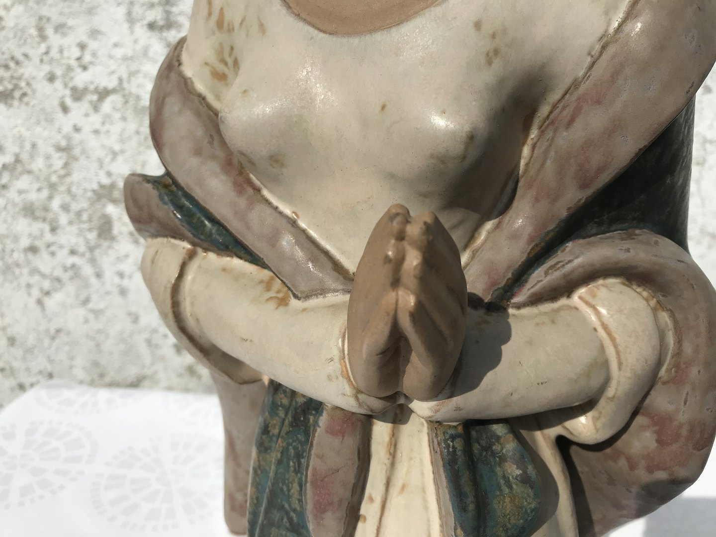 Large Lladro figure, stoneware, Woman in prayer, 42cm high, 22cm wide, Design Julio Fernändez * Nice condition with few traces of wear and minimal notch on the edge (see last photo) *