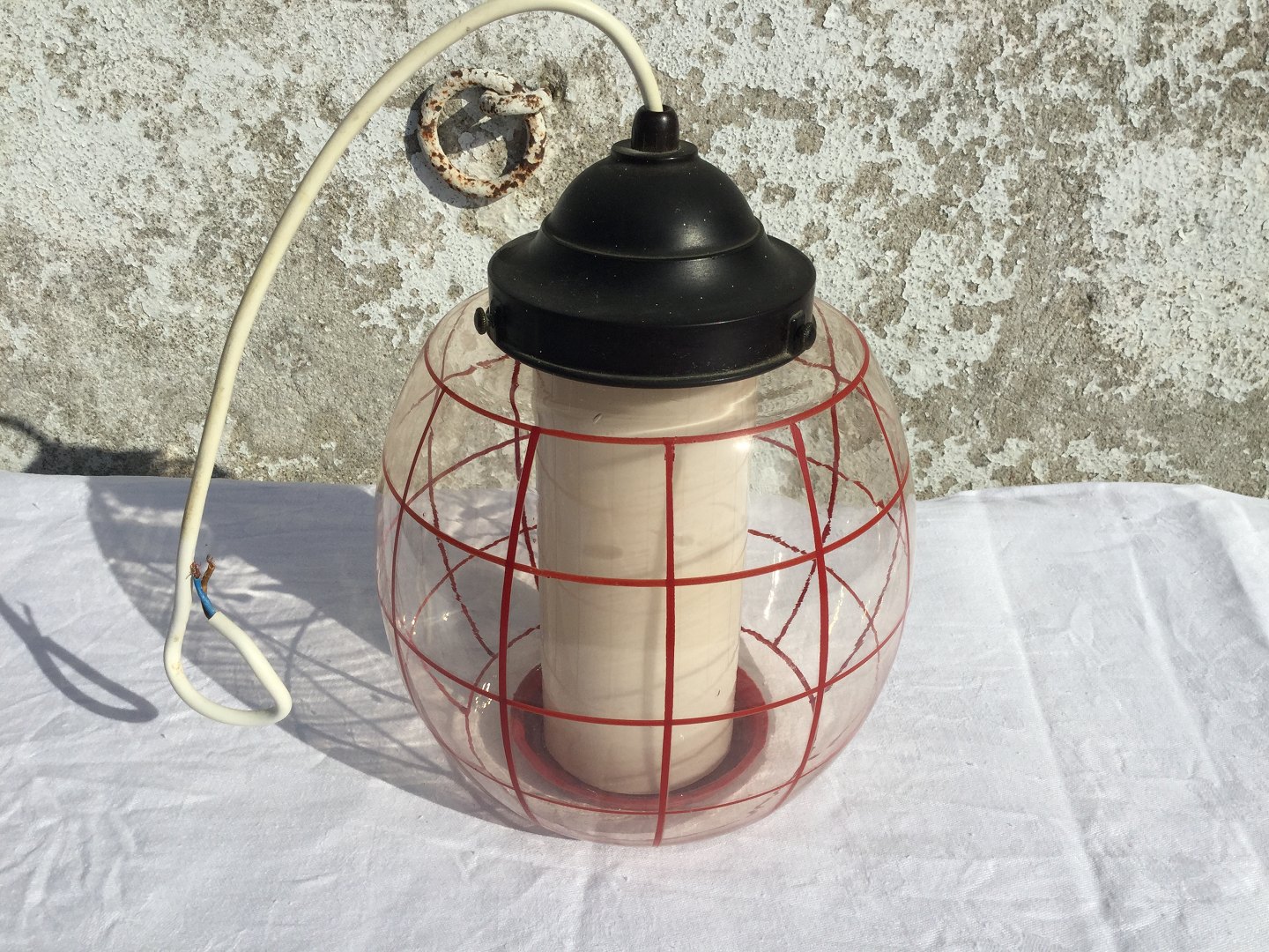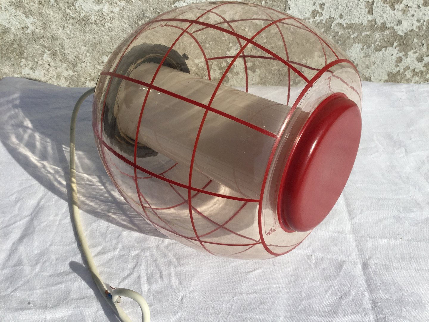 Glaspendel med røde striber