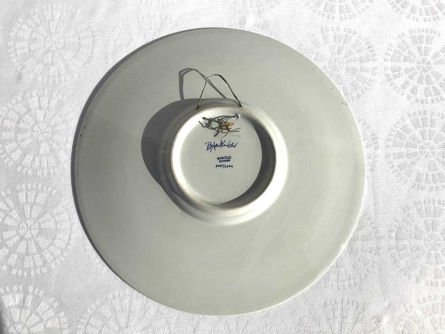 Bjørn Wiinblad, Nymølle, Blå Platte med kvindeansigt, 30cm i diameter, Nr. 3057/1242 *Perfekt stand*