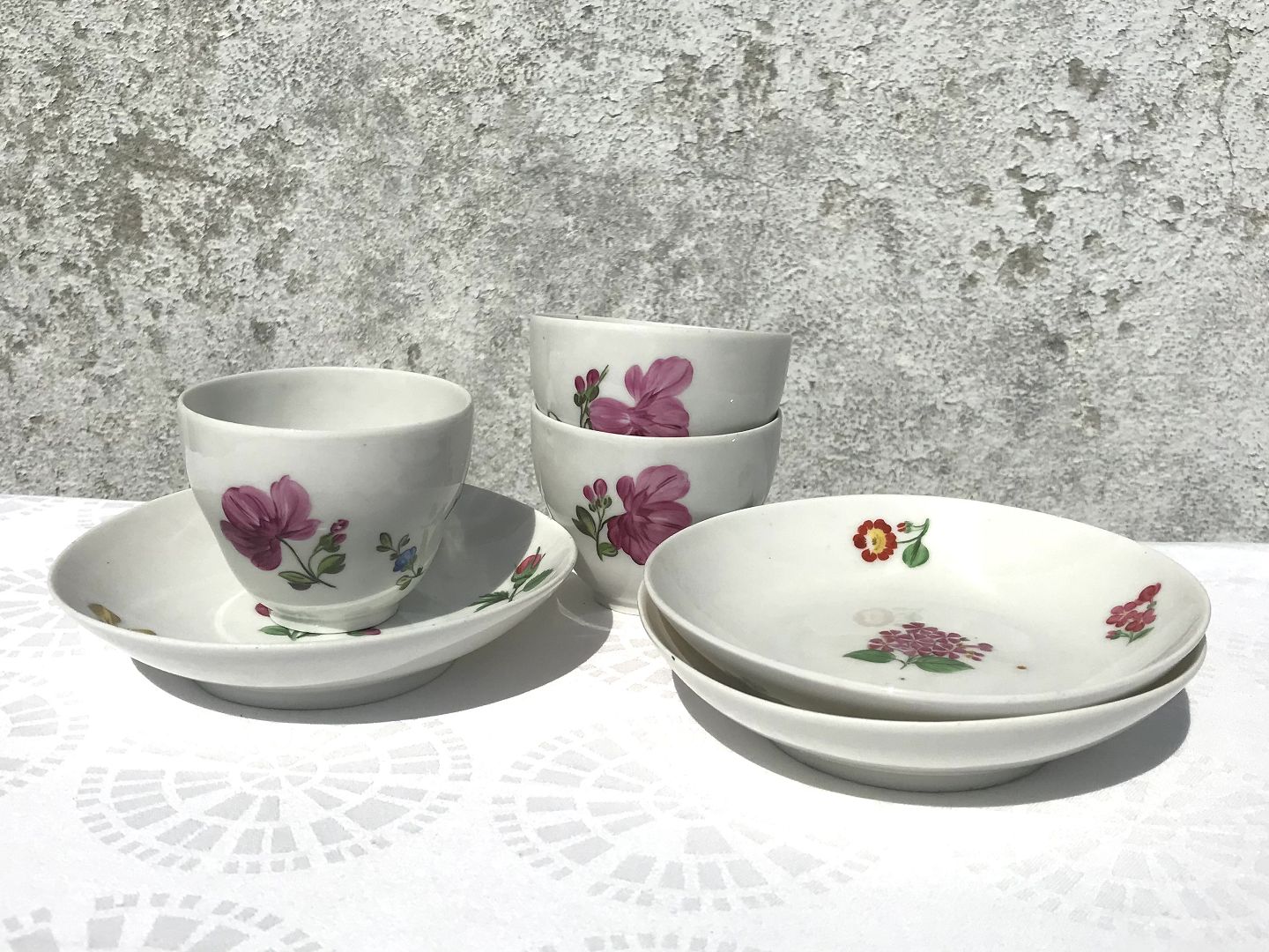 Royal Copenhagen, Kop uden hank og underkop med blomster, 7cm høj, 8,5cm i diameter *Pæn patineret stand*