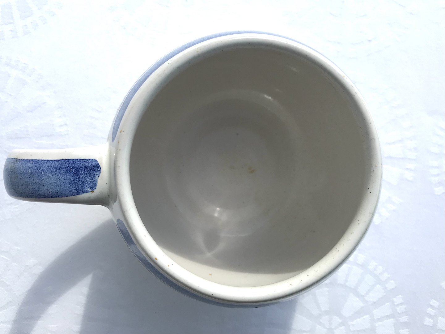 Bodil Westphal Enna keramik, Krus med hank, Med blomster og blå bånd *Pæn stand*