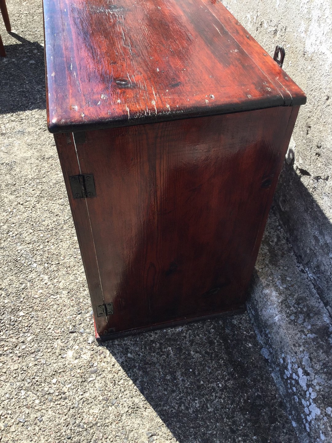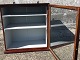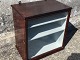 Dunkel lackierter Holzschrank mit Glastür, innen grau lackiert. Schöner Zustand. Maße: HxBxT 60x58x37 cm