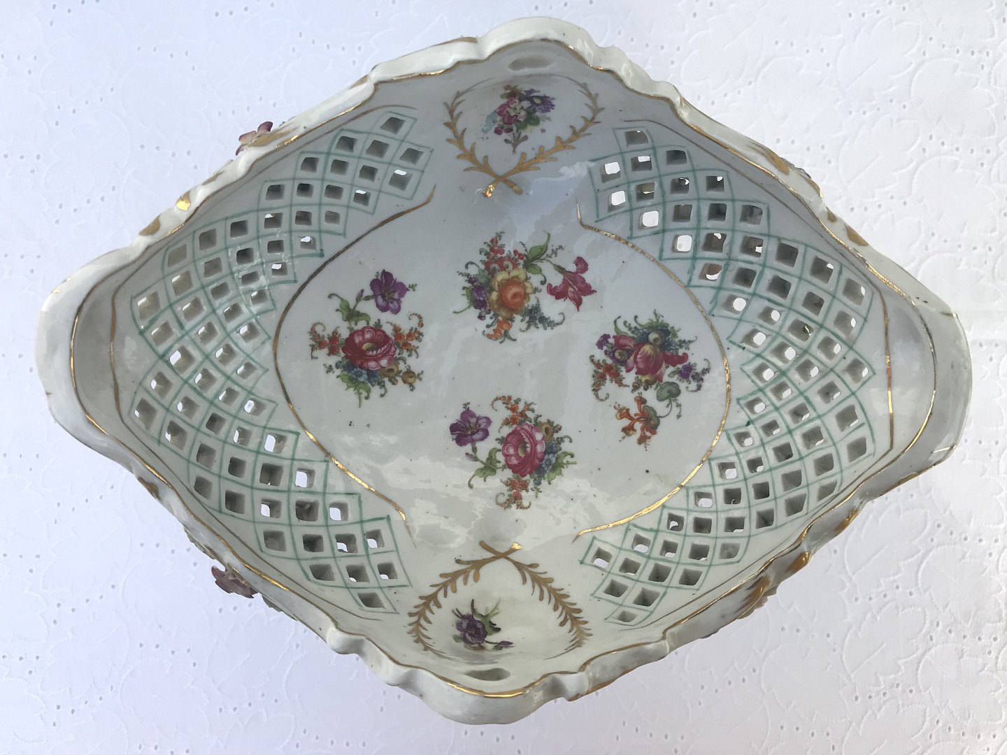 Royal Vienna marked with shield / Beehive, Old porcelain insert with various figures, The upper part lies loosely on the lower part. 25cm high, 23cm wide * Appears with small rejections on flowers (the largest is on the back of the female figure's hat) *