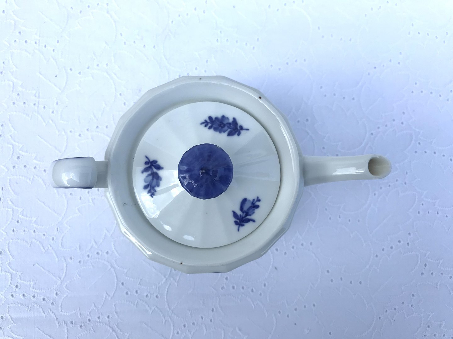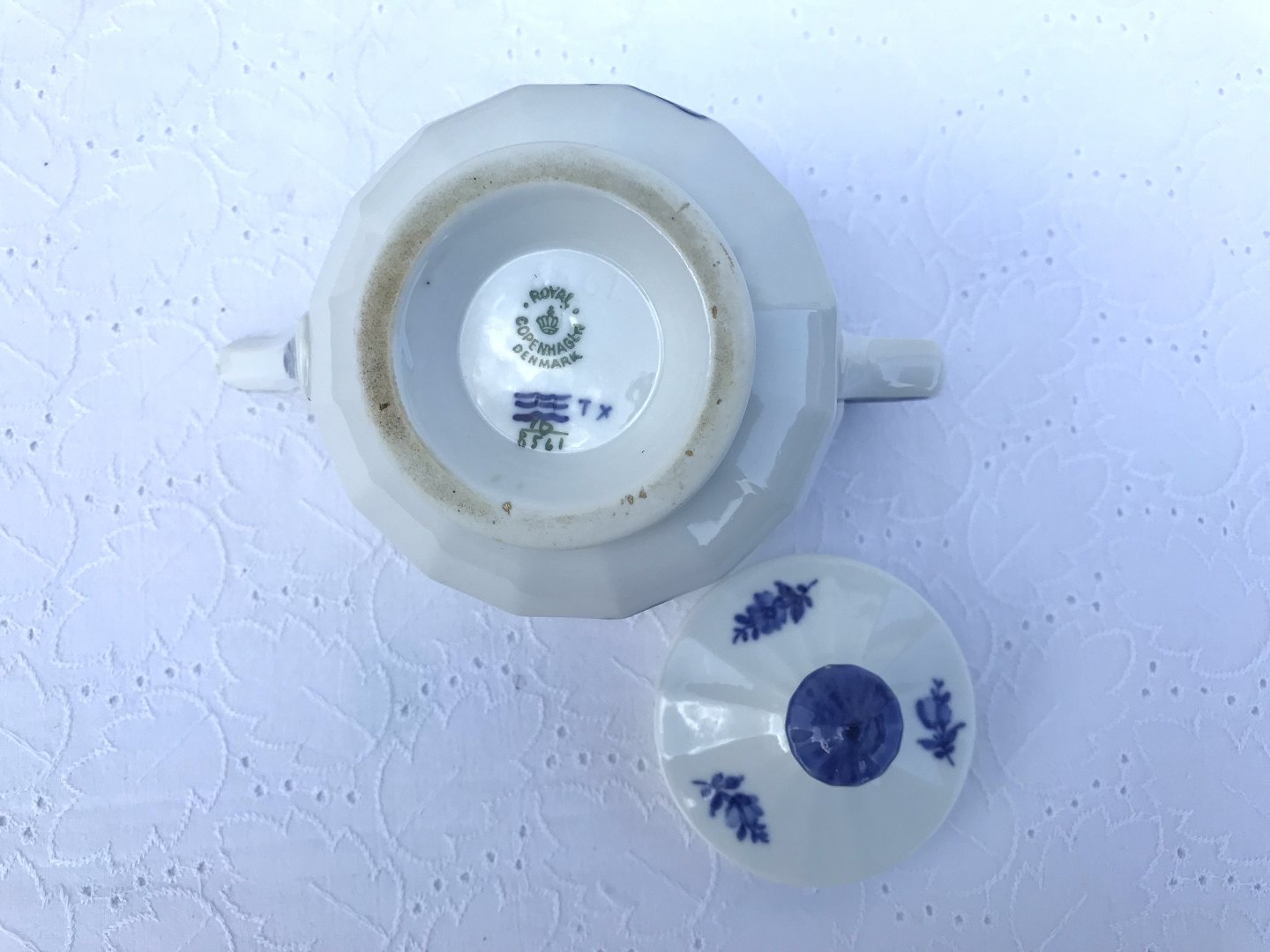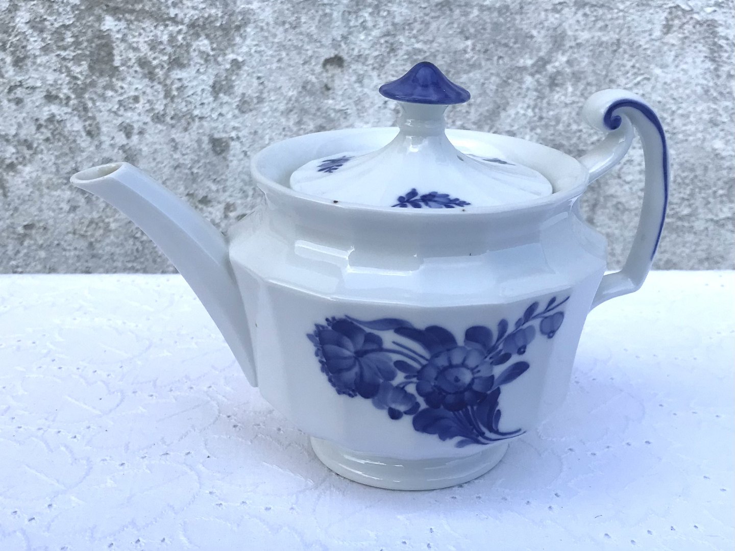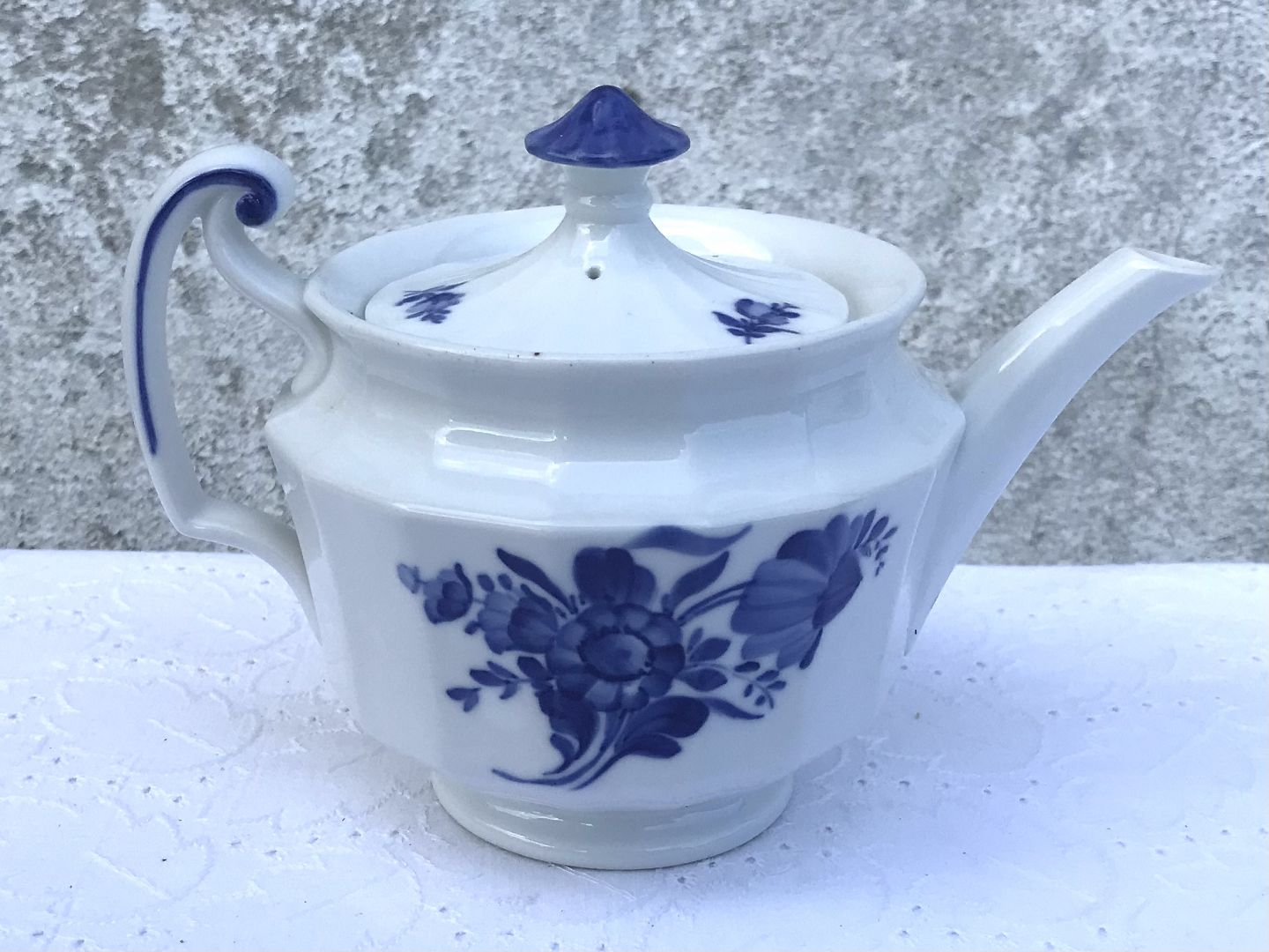 Royal Copenhagen, angular blue flower, Teapot # 10/8561, 20cm wide, 12.5cm high, Staff sorting * With sulfur marks *
